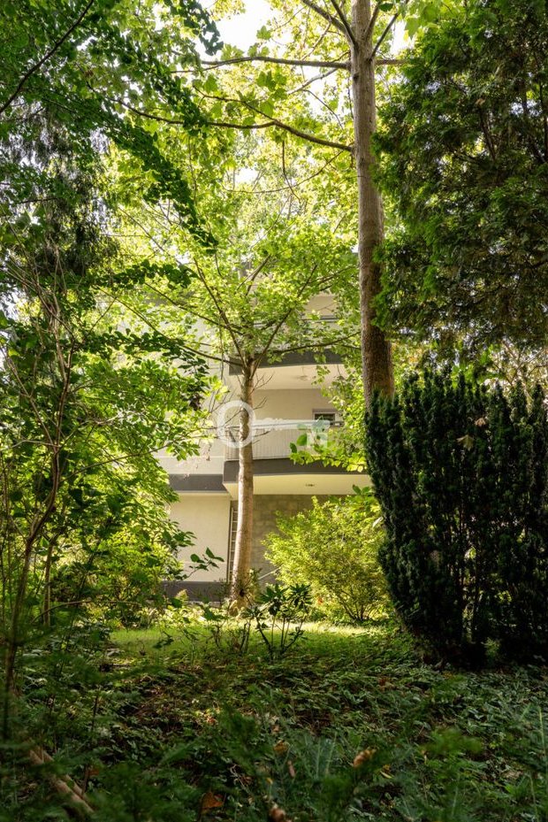 In front of the house, there is a pleasant terrace hidden in the shade of trees with direct access from the kitchen. The garden behind the house is covered with old trees and its border connects with the city's green area.