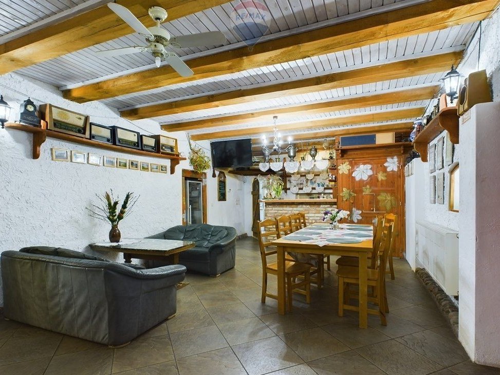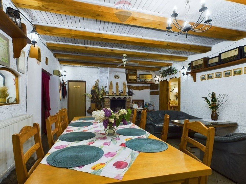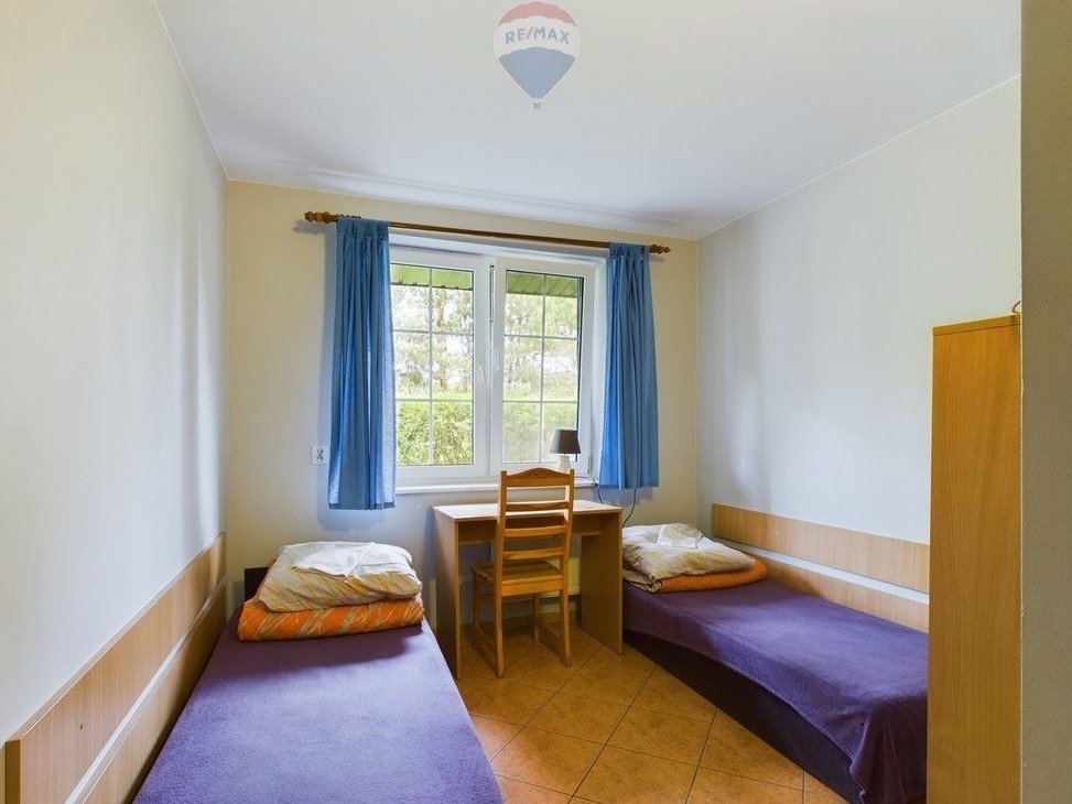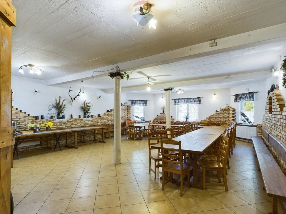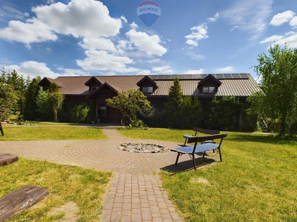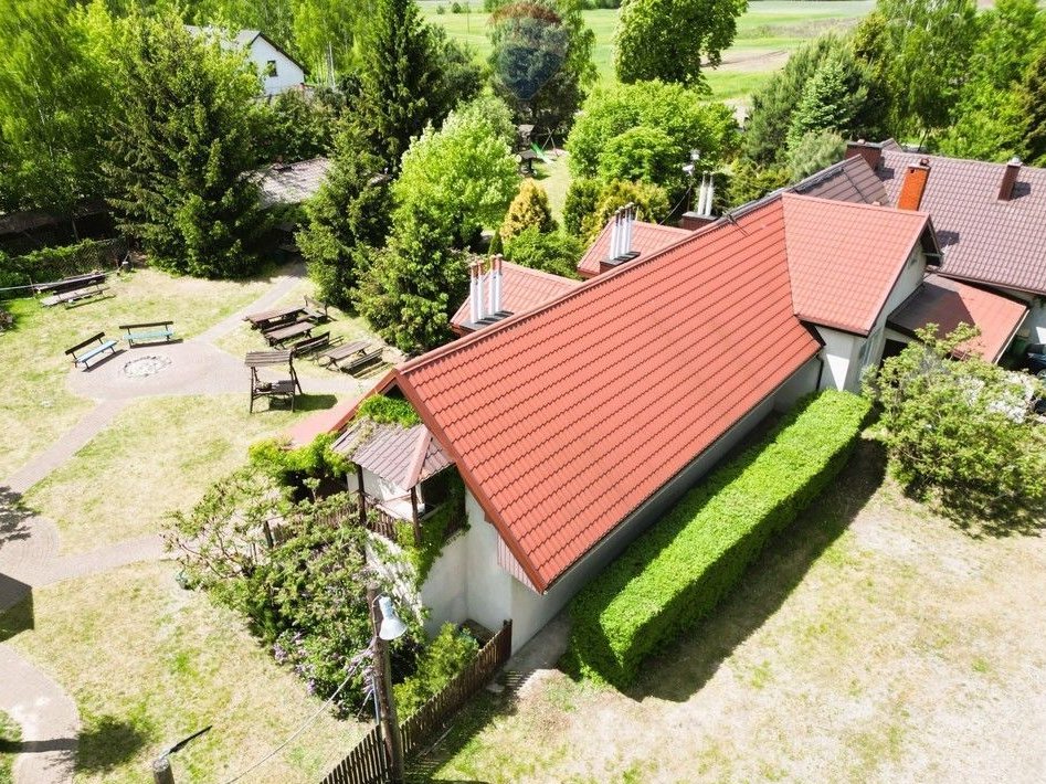 Nieruchomość składa się z dwóch budynków o łącznej powierzchni użytkowej przekraczającej 1000 m². Jeden z budynków łączy funkcję mieszkalną i gościnności – na parterze znajdą Państwo sześć komfortowych pokoi gościnnych z prywatnymi łazienkami, jadalnię oraz przytulny salon z kominkiem, natomiast na piętrze mieści się przestronne mieszkanie właścicieli. Drugi budynek został zaprojektowany z myślą o organizacji wydarzeń – imponująca sala bankietowa, która może pomieścić do 150 osób, stanowi doskonałe tło dla wesel, uroczystości rodzinnych czy eventów firmowych. Dodatkowo, na piętrze budynku dostępne są dodatkowe pokoje gościnne z łazienkami.