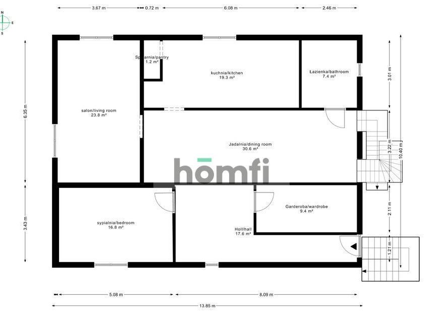 salon,sypialnia,garderoba,hol,łazienka,kuchnia+spiżarnia,jadalnia