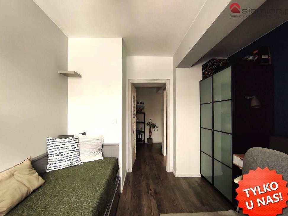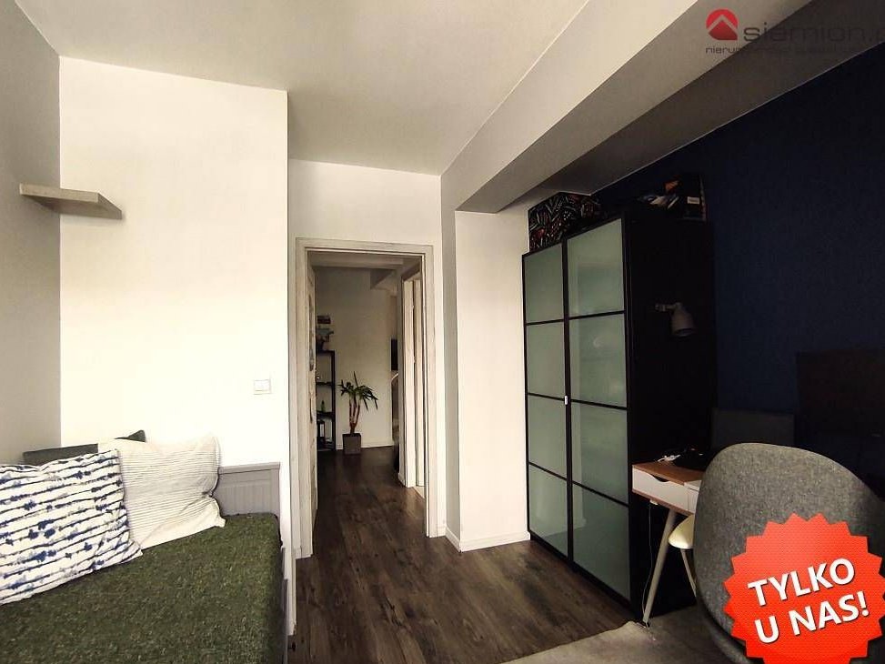 Na wyposażeniu zostają meble kuchenne wraz ze sprzętem AGD - zmywarka, lodówko-zamrażarka, płyta indukcyjna oraz szafy w przedpokoju oraz pokoju.