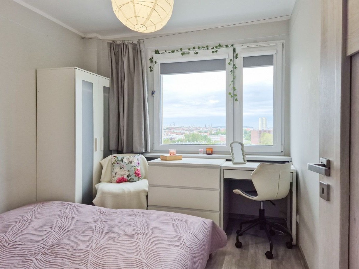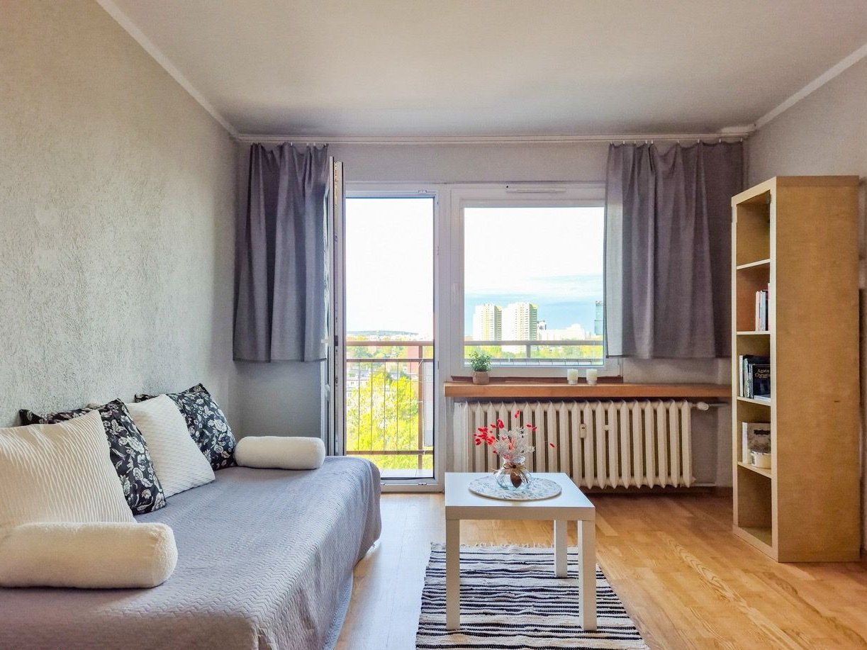 Mieszkanie jest dobrze doświetlone, a wysokość piętra zapewnia piękny widok na miasto.