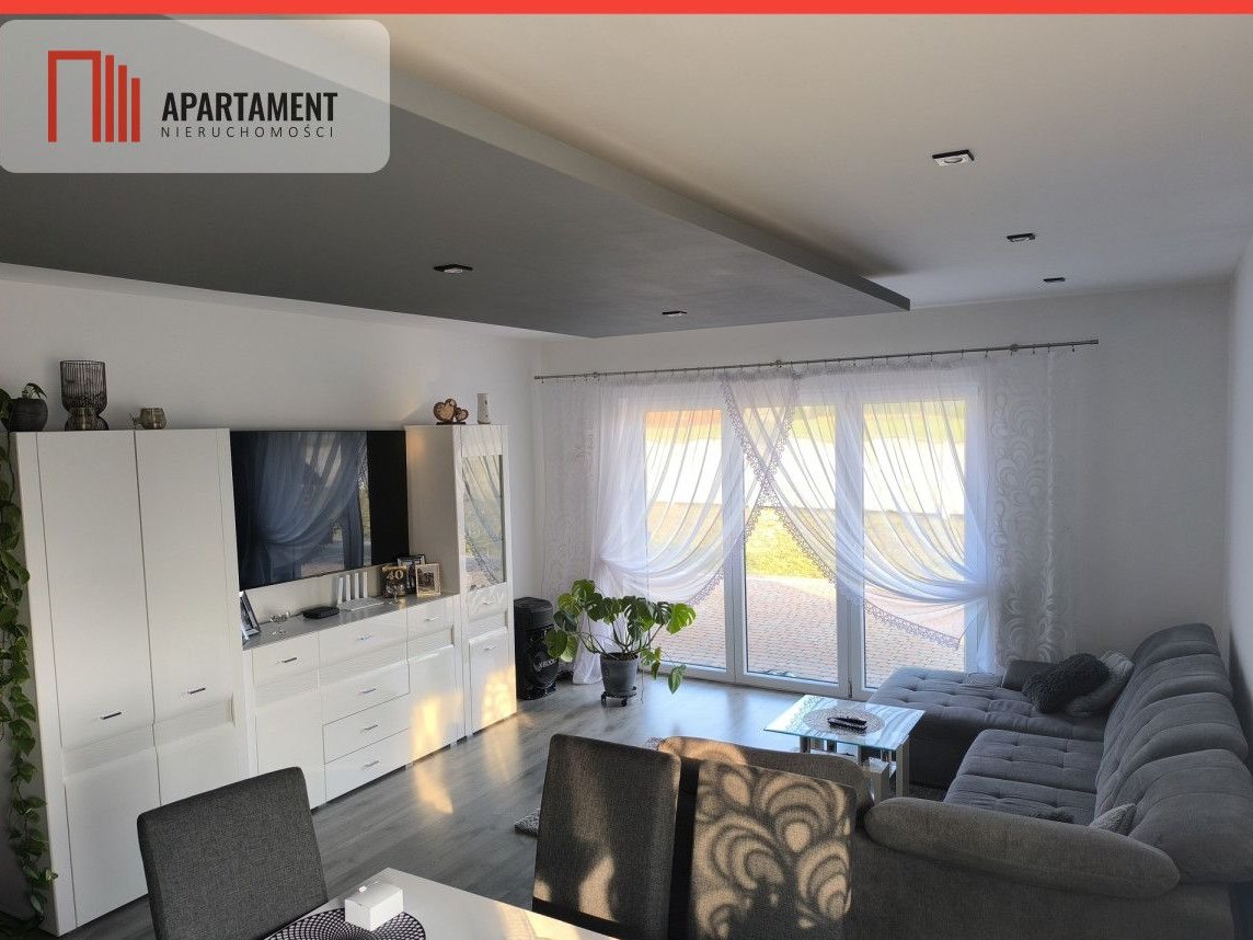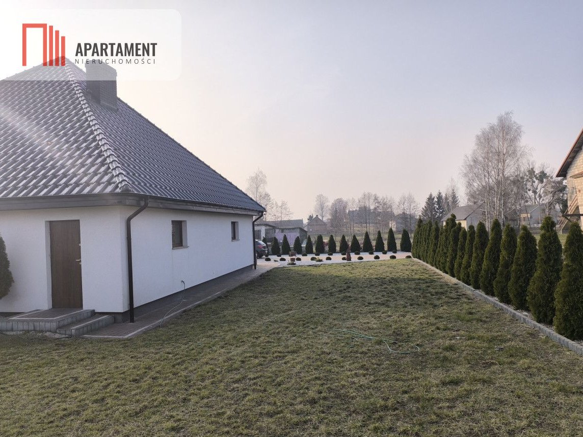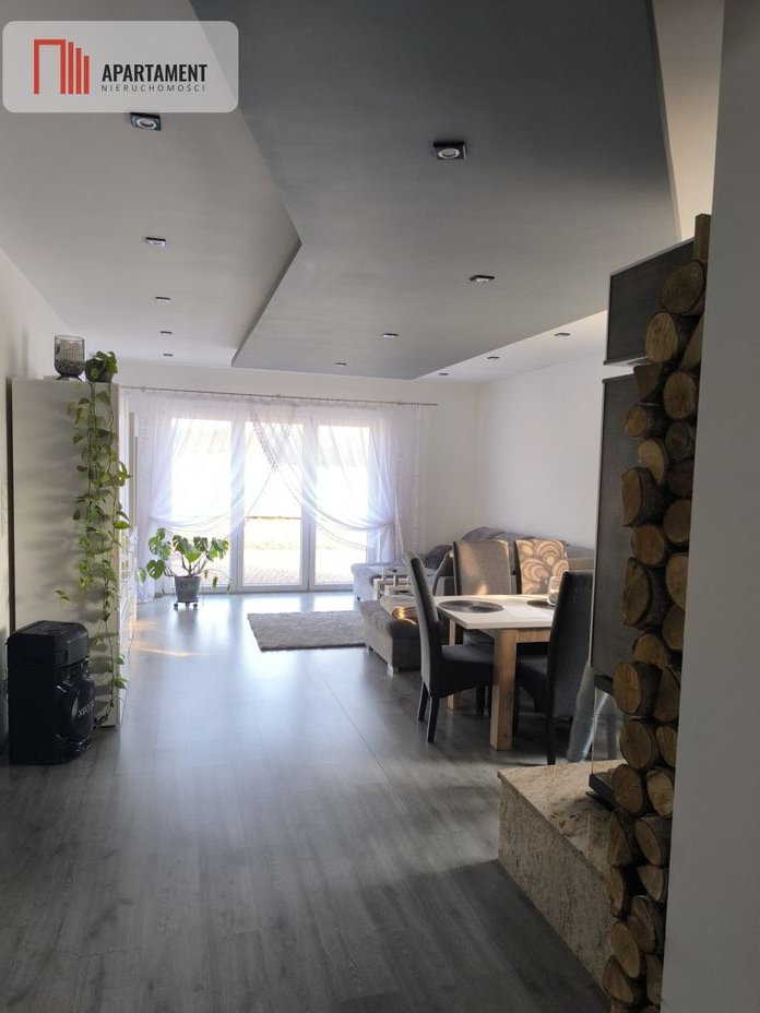 Dom jest bardzo przestronny, słoneczny i komfortowy - posiada wiatrołap, kuchnię z meblami pod zabudowę i wyposażeniem AGD, przestronny salon z kominkiem na drewno, aby nadać miłą atmosferę w trakcie wypoczynku z wyjściem na duży taras i ogród ,sypialnię, pokój dziecięcy oraz łazienkę z toaletą. Poddasze domu ok 70m2 pozostaje do własnej aranżacji. Dom ogrzewany piecem na eko groszek z podajnikiem 5 klasa, ogrzewanie podłogowe plus grzejniki.
