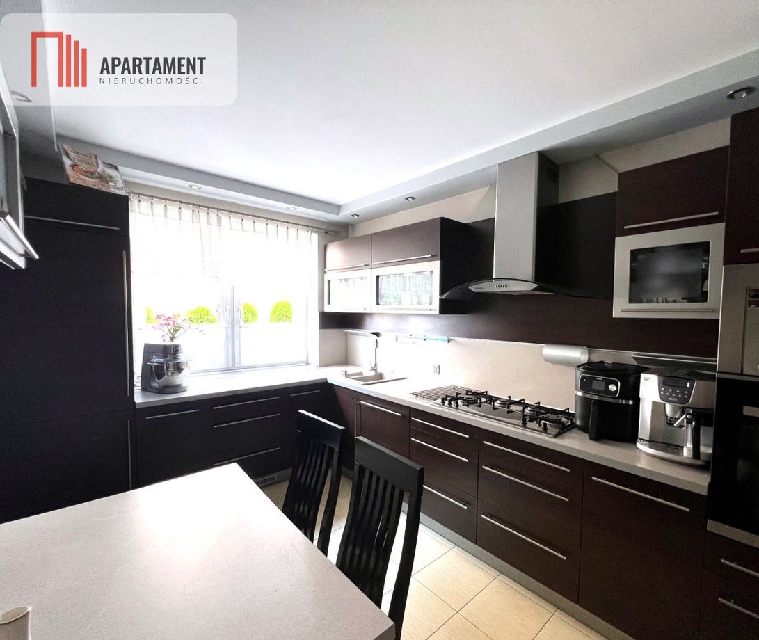 Kuchnia w pełni wyposażona w urządzenia, jasna i funkcjonalna.