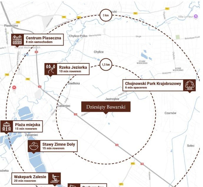 To idealne miejsce dla osób, które chcą mieszkać blisko natury, a jednocześnie szybko dojeżdżać do Warszawy, Piaseczna i Konstancina-Jeziorny.