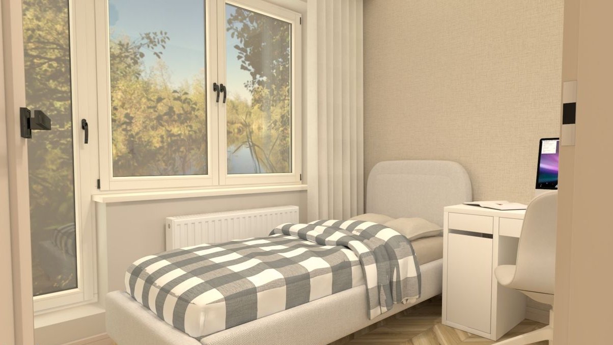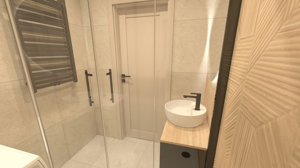 Całości dopełnia łazienka zaprojektowana w oparciu o najnowsze trendy, wyposażona w komfortową kabinę prysznicową oraz elegancką ceramikę.