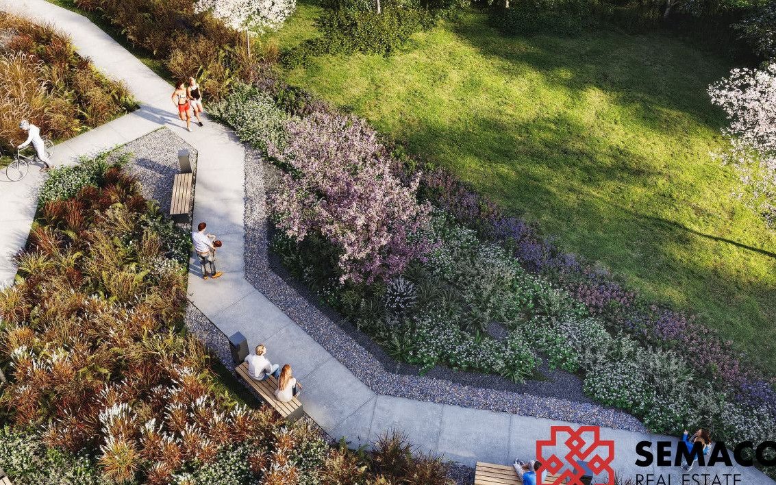 Zadbano o estetyczne zagospodarowanie przestrzeni - wśród zieleni powstały ścieżki spacerowe, strefy relaksu, plac zabaw oraz świetlica z funkcją coworkingu.