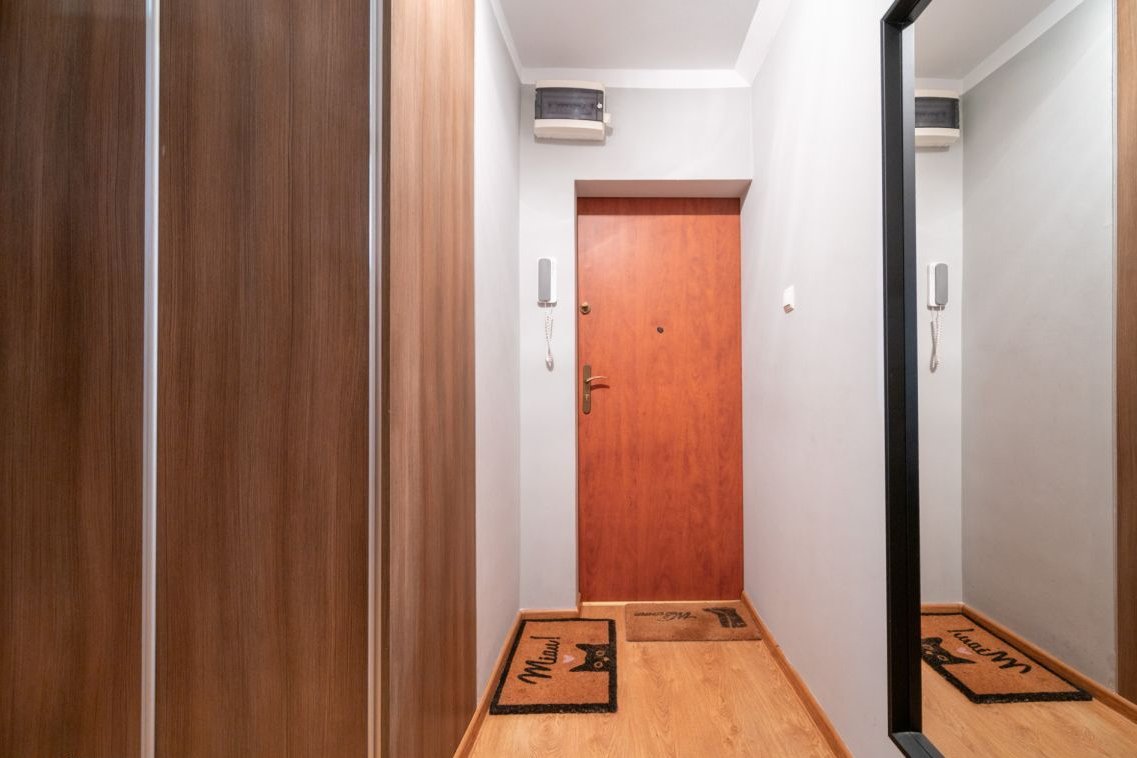 Na 11. piętrze zadbanego budynku przy ul. Wawelskiej znajduje się mieszkanie o powierzchni 59,7 m², do którego prowadzi oddzielna, zamykana klatka schodowa. Dostęp mają jedynie właściciele dwóch mieszkań, co gwarantuje wyjątkową prywatność i spokój — rzadko spotykany atut w budownictwie wielorodzinnym.