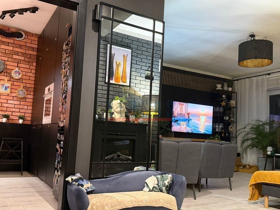 Dom składa się z pokoju dziennego o powierzchni 27,1m2 z wyjściem na duży taras, 3 sypialni o powierzchniach 12,8m2 10,2m2 8,7m2, dużej garderoby 3,2m2 szafa w zabudowie PAX IKEA, kuchni 12,7m2 (2 lodówki - wolnostojąca i w zabudowie), łazienki 5m2, przedpokoju 11,2m2, wiatrołapu 5m2 szafa w zabudowie PAX IKEA, wiatrołapu 4,3m2, kotłowni 7,3m2 oraz garażu jednostanowiskowego 19,3m2. Brama wjazdowa i garażowa automatyczna sterowane na pilota. Możliwość instalacji kominka, podprowadzenie komin i czerpnia powietrza !!!