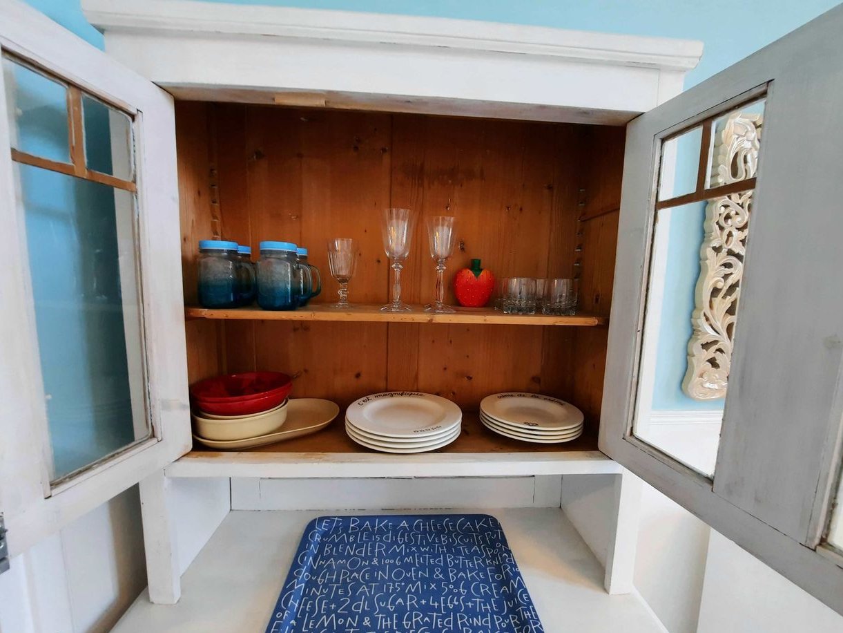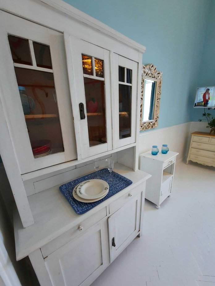Aneks kuchenny z lodówką, kuchenką mikrofalową, dwupalnikową płytą indukcyjną, ekspresem do kawy i czajnikiem. W aneksie kuchennym znajduje się kącik jadalny.