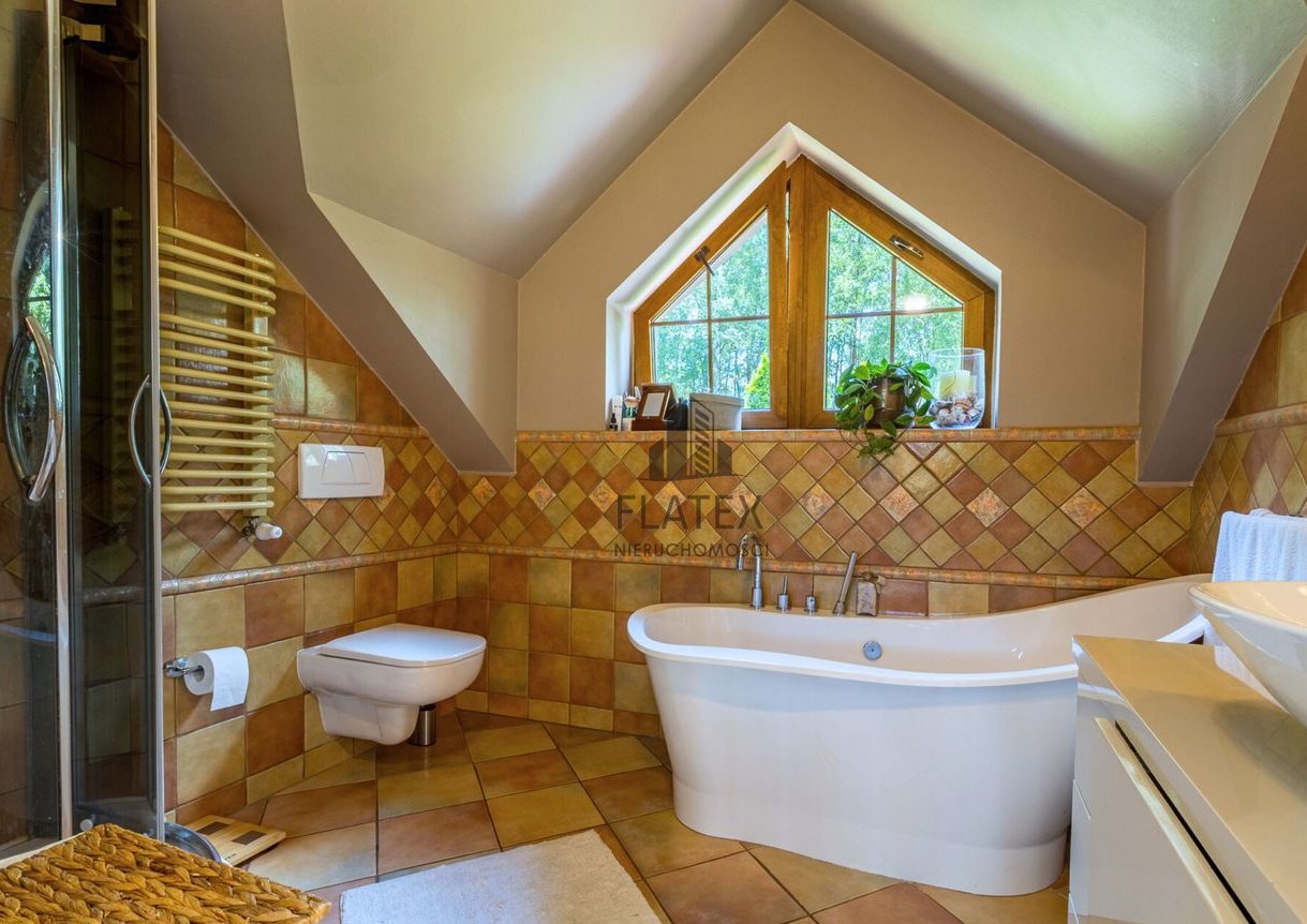 Wolnostojący, klimatyczny dom o powierzchni użytkowej 192,92 m², posadowiony na starannie zagospodarowanej działce o łącznej powierzchni 2308 m² (5 działek: 3 własnościowe, 2 w użytkowaniu wieczystym).
