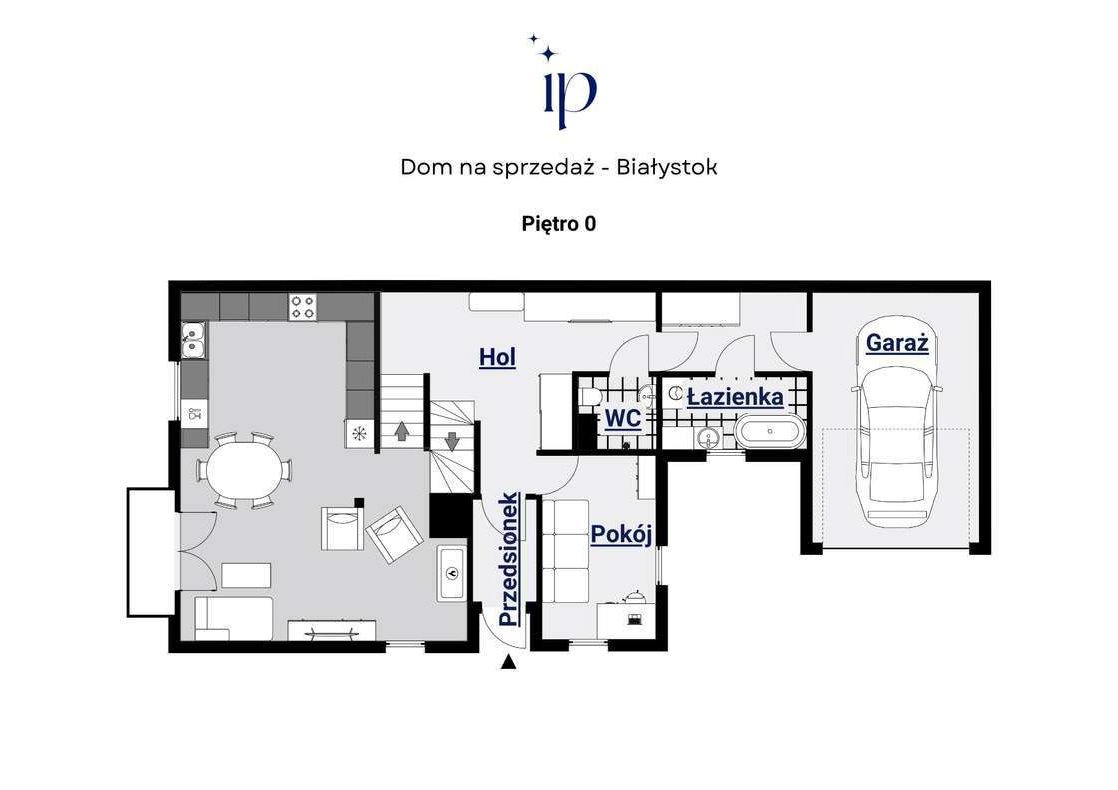 Piętro 0: hol, przedsionek, pokój, łazienka z wanną, oddzielne WC z prysznicem, garaż;