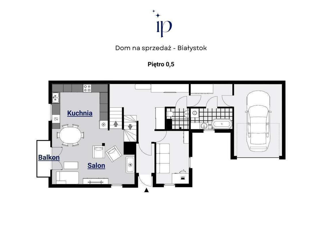 Piętro 0,5: salon, kuchnia, balkon;
