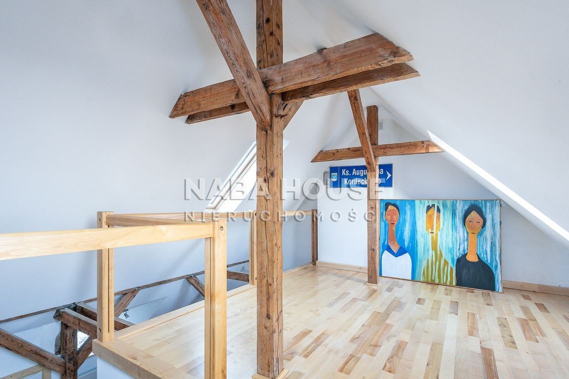Powierzchnia podłogi to 117 m2, z uwagi na skosy powstaje sporo powierzchni dodatkowej powyżej metrażu z księgi wieczystej - przestrzeń tę w naturalny sposób można wykorzystać na szafy i komody - te prawie 30 m2 podłogi i przestrzeni nad nią to wartość dodana do tej ciekawej oferty.