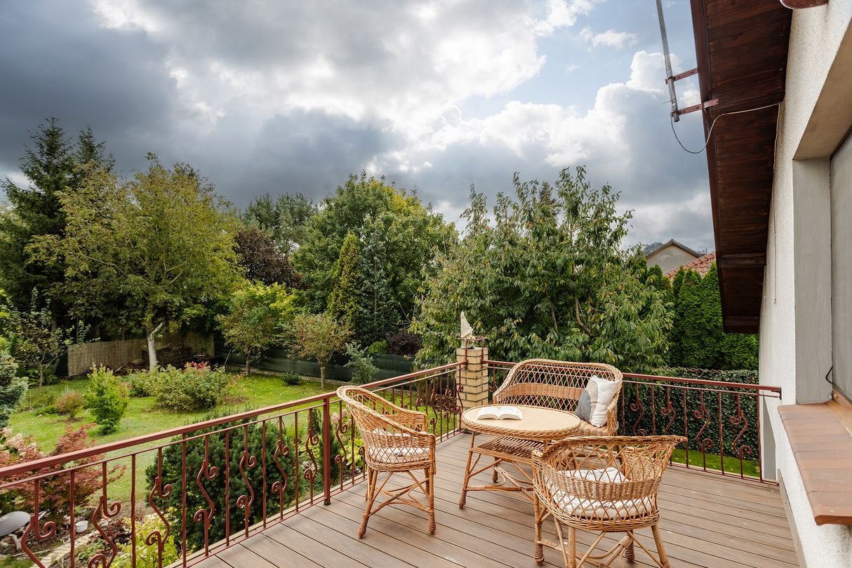 Taras: Z jednego z pokoi na piętrze znajduje się wyjście na taras z widokiem na ogród.