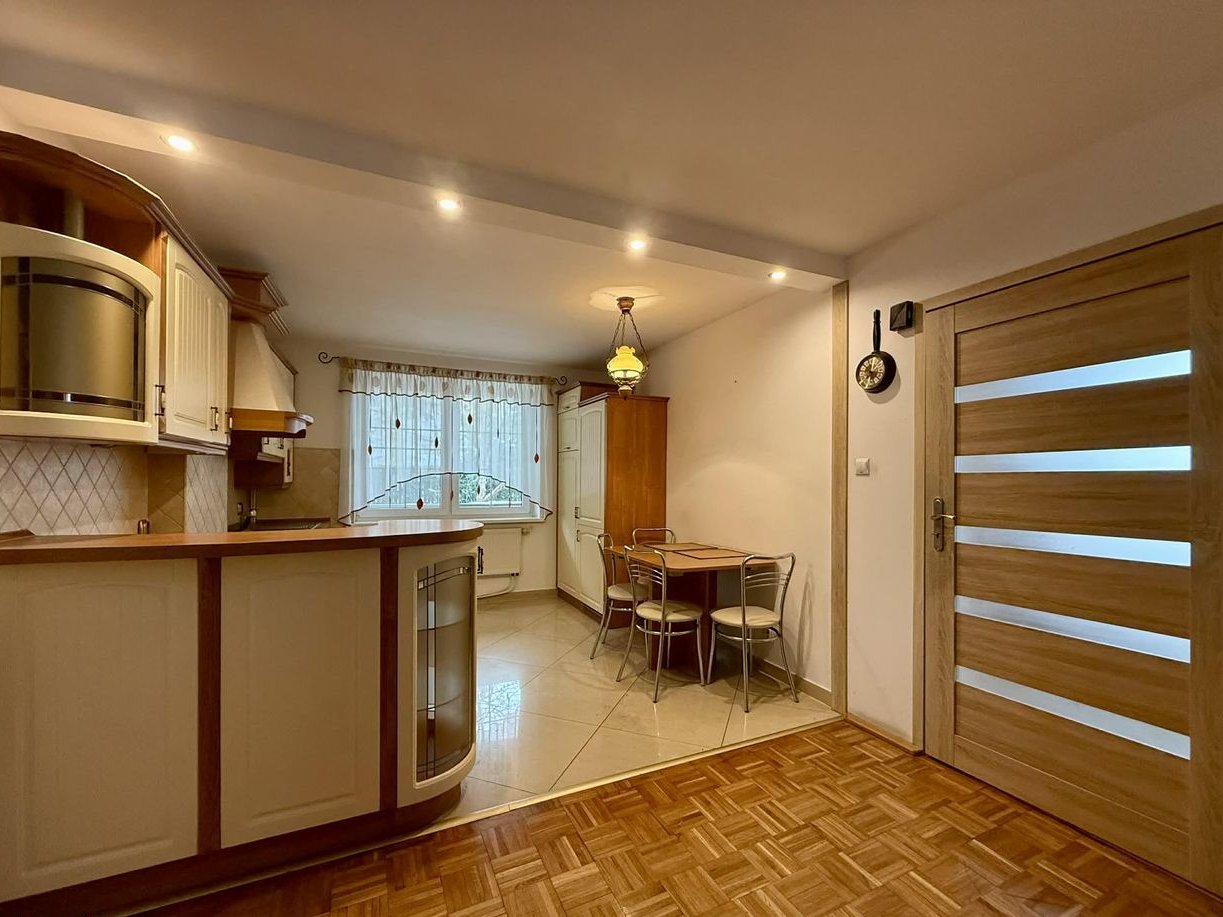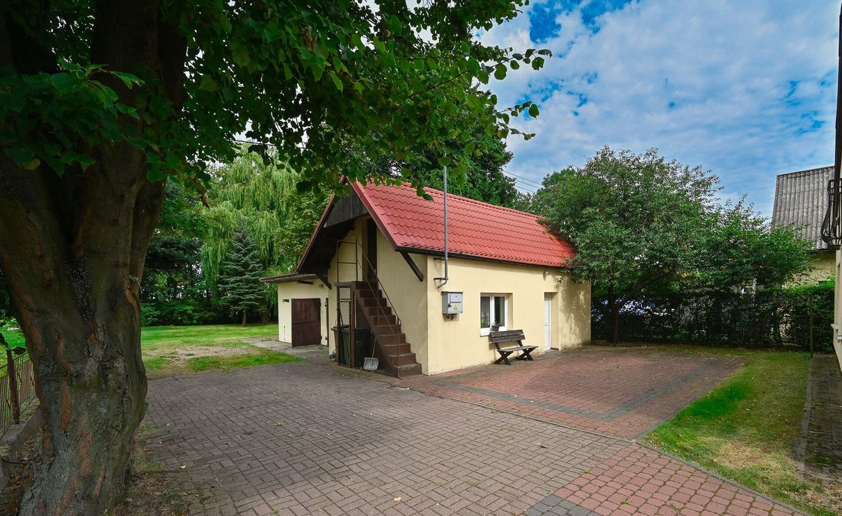 Na terenie posesji znajduje się budynek pomocniczy a w nim kotłownia, dodatkowe mieszkanie (kawalerka), poddasze, a także garaż z dwoma bramami i część gospodarcza. Wszystko stanowi bardzo spójną całość, świetnie komponuje się ze sobą i dodaje charakteru tej posiadłości.
