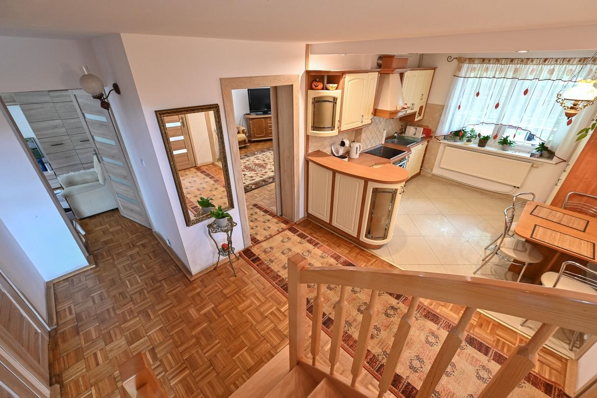 Budynek główny (dom mieszkalny) jest bardzo zadbany, solidny, a co najważniejsze był kilkukrotnie modernizowany, ulepszany, a także rozbudowywany. Jest ocieplony, posiada solidny dach, dobre okna no i bryłę, która wspaniale komponuje się z całością tej nieruchomości. Wykończenie wewnątrz - mimo, że nie najnowsze - prezentuje wysoki standard i klasyczną ponadczasowość. Uwagę zwracają nowe i wysokojakościowe schody, meble kuchenne z giętymi frontami czy łazienka wykończona marmurową glazurą. Ciekawą opcją tej nieruchomości jest możliwość zaadoptowania części strychowej (na poziomie pierwszego piętra) na dodatkowe pokoje czy pomieszczenia użytkowe.
