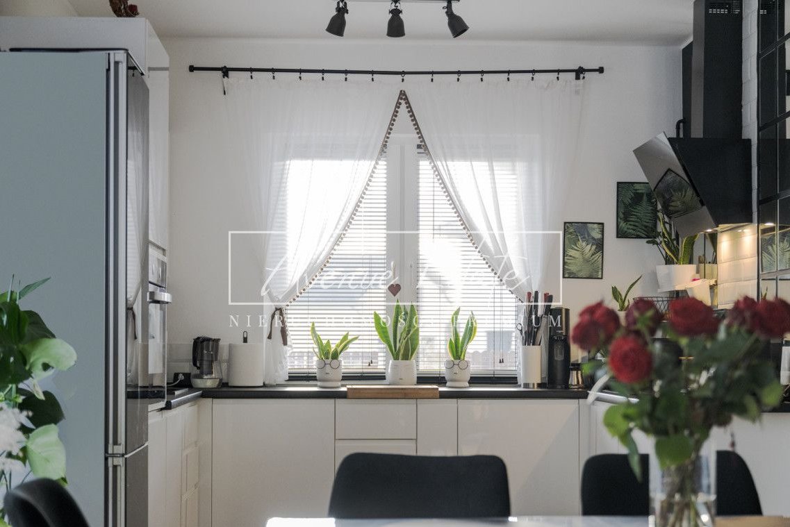 kuchnia z oknem, otwarta na salon, w pełni wyposażona w sprzęt AGD;