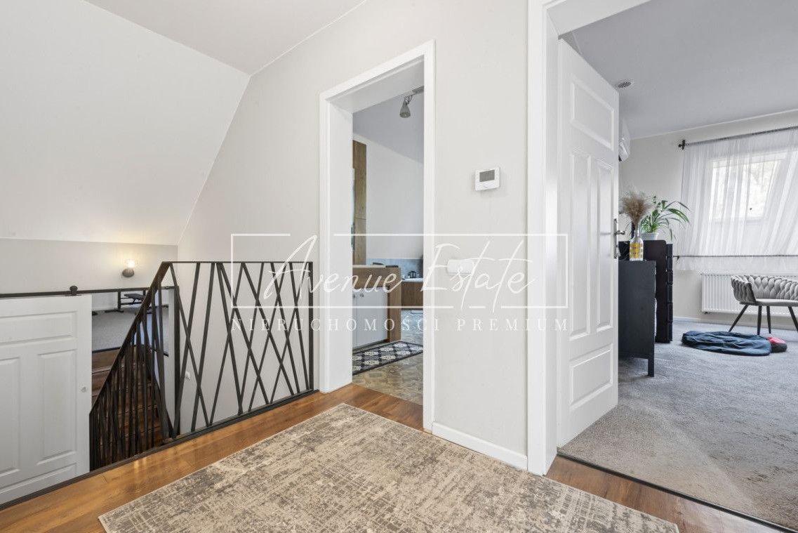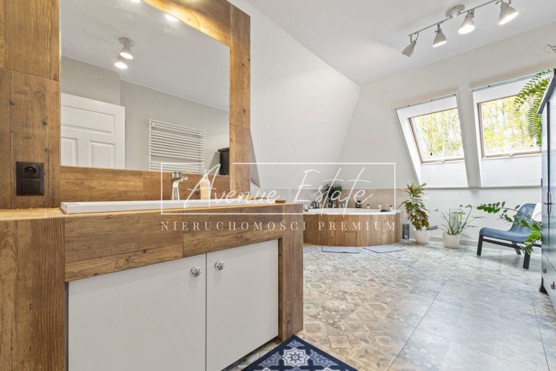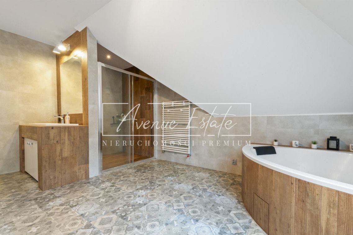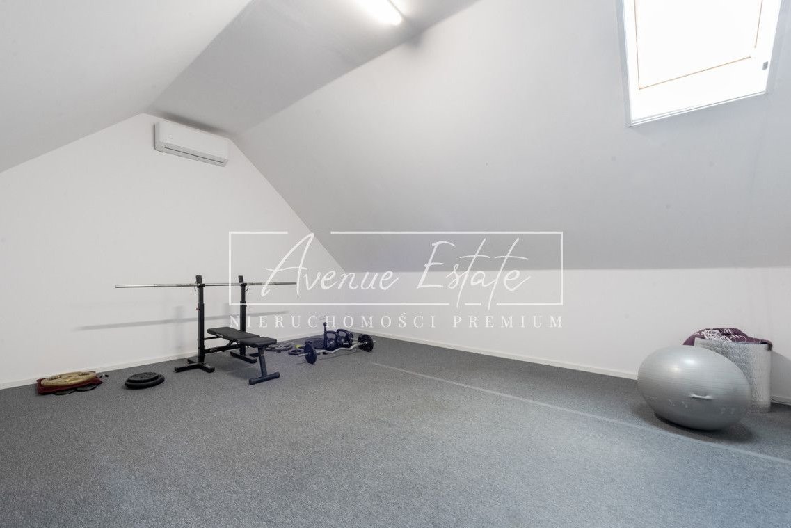 oddzielna, sporych rozmiarów przestrzeń nad garażem o pow. ok. 40 m2, z oknem dachowym i klimatyzacją - pomieszczenie może być z powodzeniem wykorzystane na dodatkową sypialnię lub strefę relaksu dla domowników (siłownia, kino, pokój zabaw..)