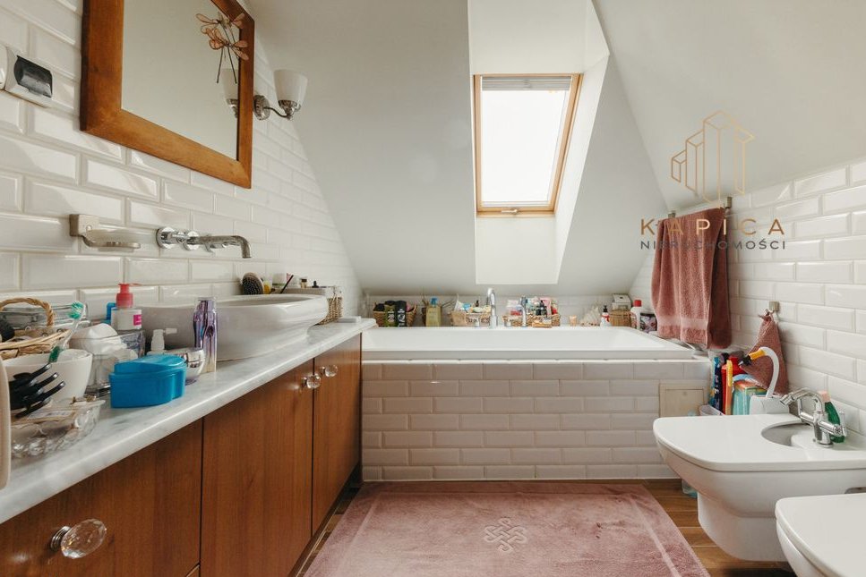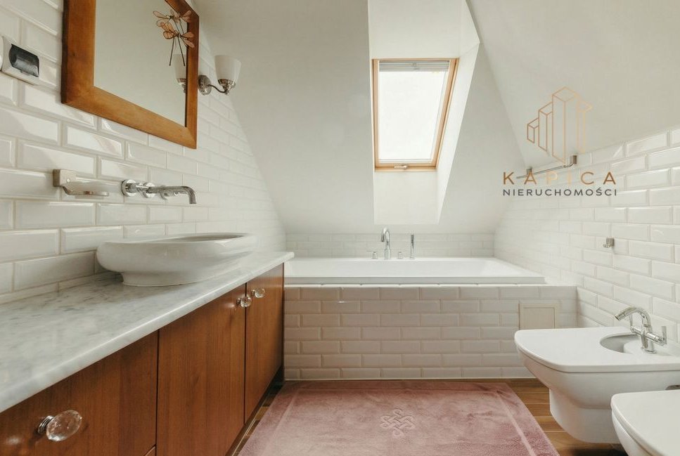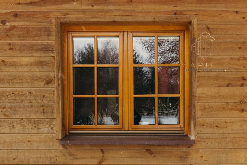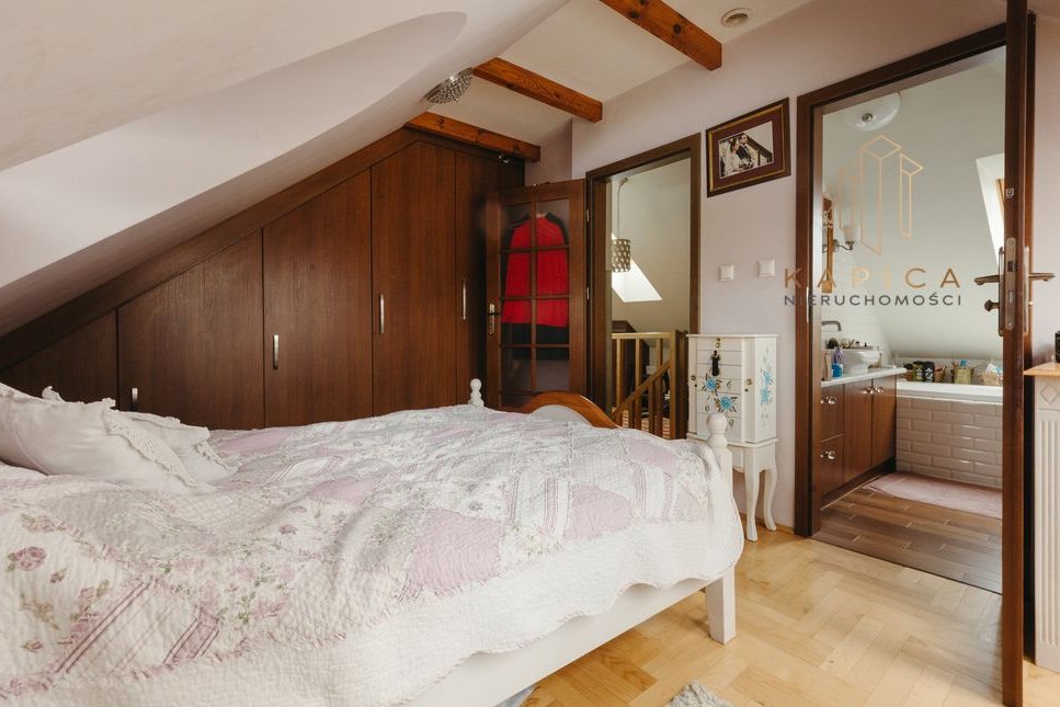 Dom zachwyca klimatem – klasyczne wnętrza, drewniane elementy oraz stylowe wykończenie tworzą przytulną i elegancką przestrzeń do życia.