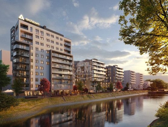 Kompleks budynków mieszkalnych z kaskadowymi fasadami, które otwierają się na bezpośrednie sąsiedztwo Kanału Miejskiego, Odrę i jej widoki