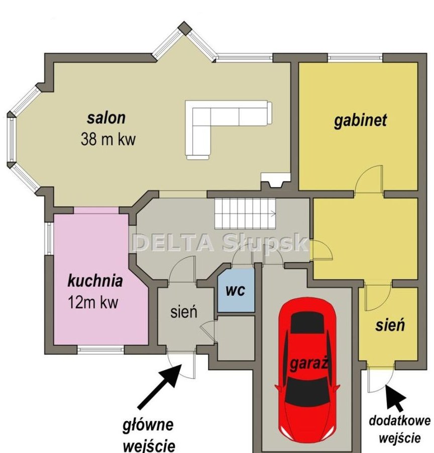 Na parterze znajdują się również: sień, garderoba, hall, toaleta, garaż oraz wydzielony lokal z osobnym wejściem, składający się z trzech pomieszczeń o łącznej powierzchni 27,6 m² – idealny do prowadzenia gabinetu, biura, kancelarii, a także do przekształcenia w niezależną kawalerkę lub apartament dla gości, co jest wyjątkowym atutem tej nieruchomości.