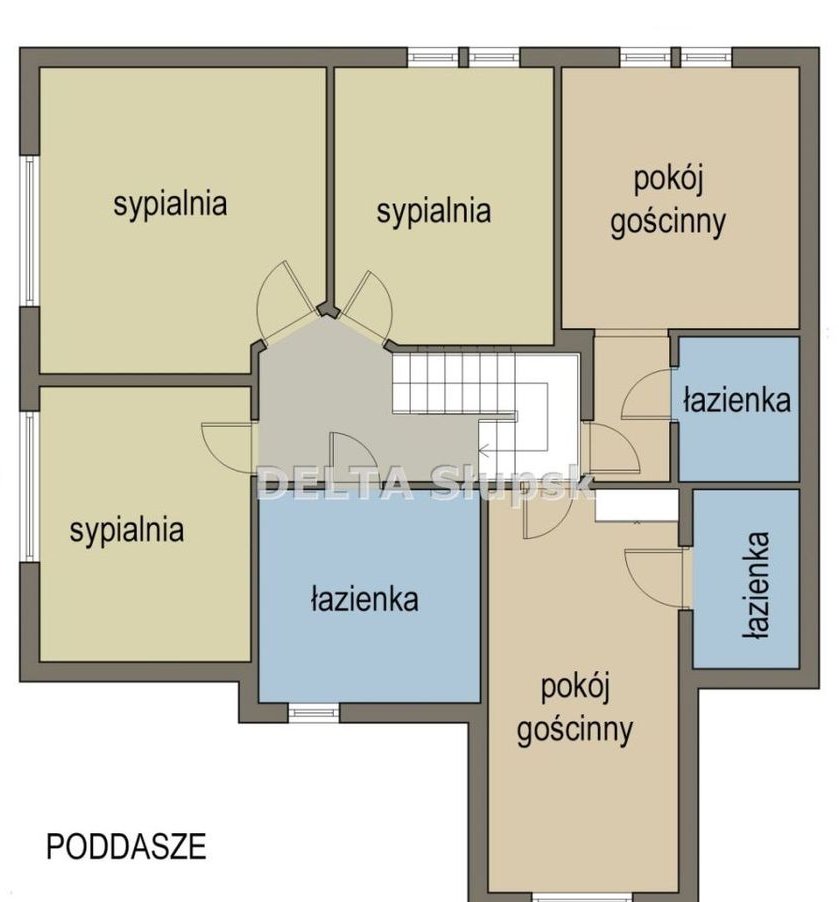 Na poddaszu użytkowym zaaranżowano trzy komfortowe sypialnie, dużą łazienkę z wanną, kabiną prysznicową i toaletą, a także dwa pokoje gościnne, każdy wyposażony we własną łazienkę.
