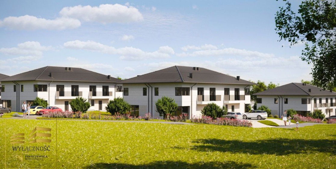 Teren inwestycji jest ogrodzony, każdy lokal posiada własną działkę, indywidualne wejście, 2 zewnętrzne miejsca postojowe.