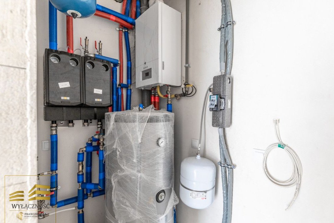 Ogrzewanie kocioł gazowy kondensacyjny - De Dietrich, Woda, dwa szambo, prąd, gaz. Ogrzewanie podłogowe, wentylacja grawitacyjna, instalacja solarna wraz z urządzeniami, termostaty ( indywidualne sterowanie każdego pomieszczenia)