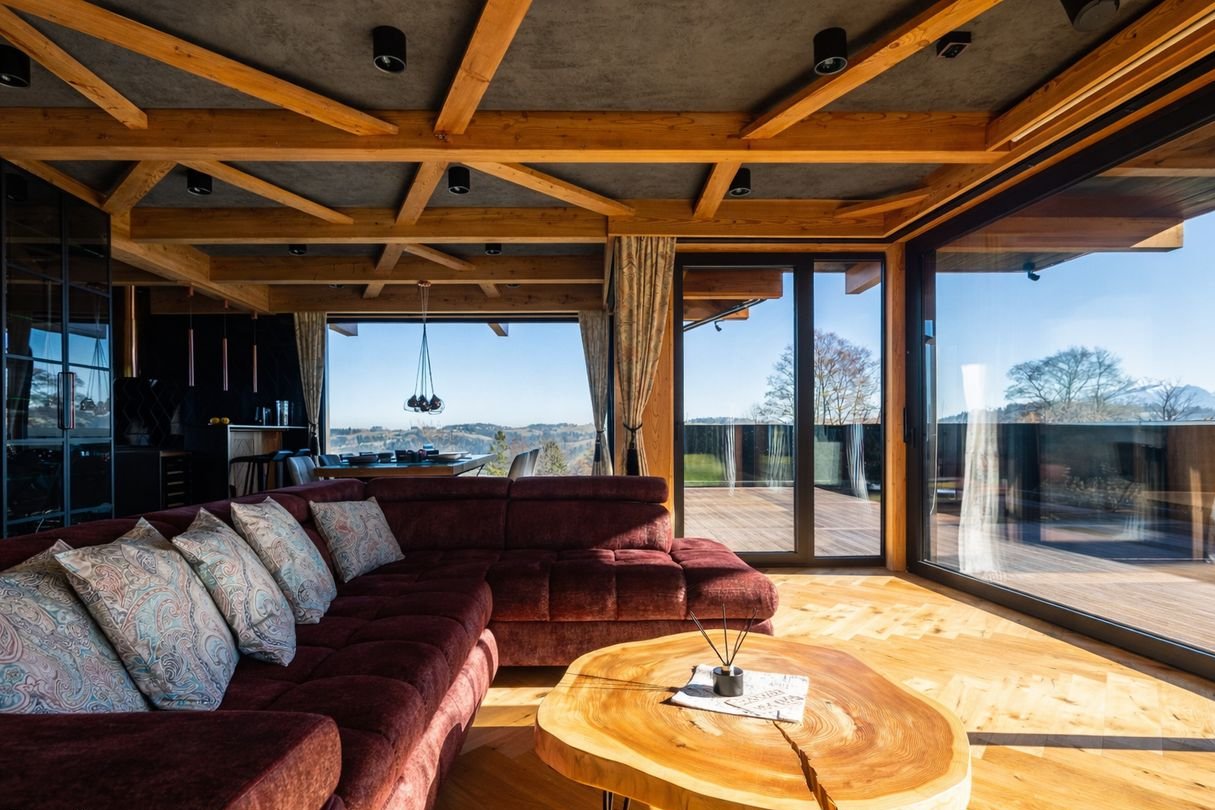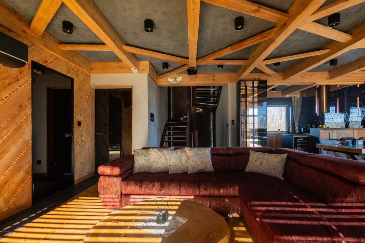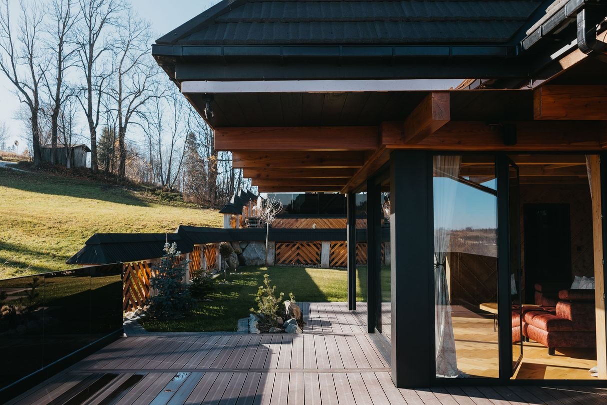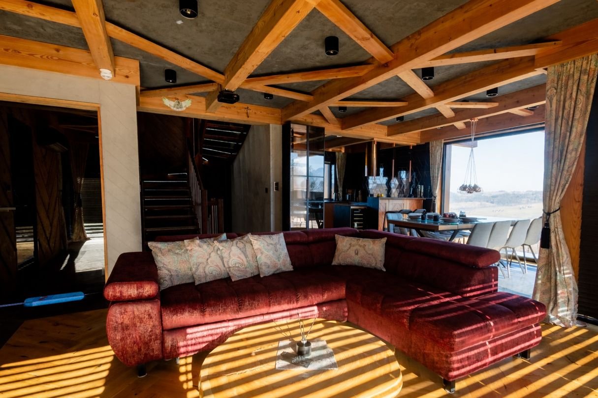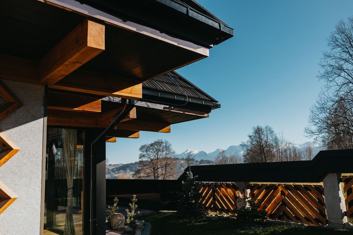 Willa łączy klasyczną architekturę góralską z nowoczesnością, z dbałością o kunszt regionalnej sztuki w drewnie.