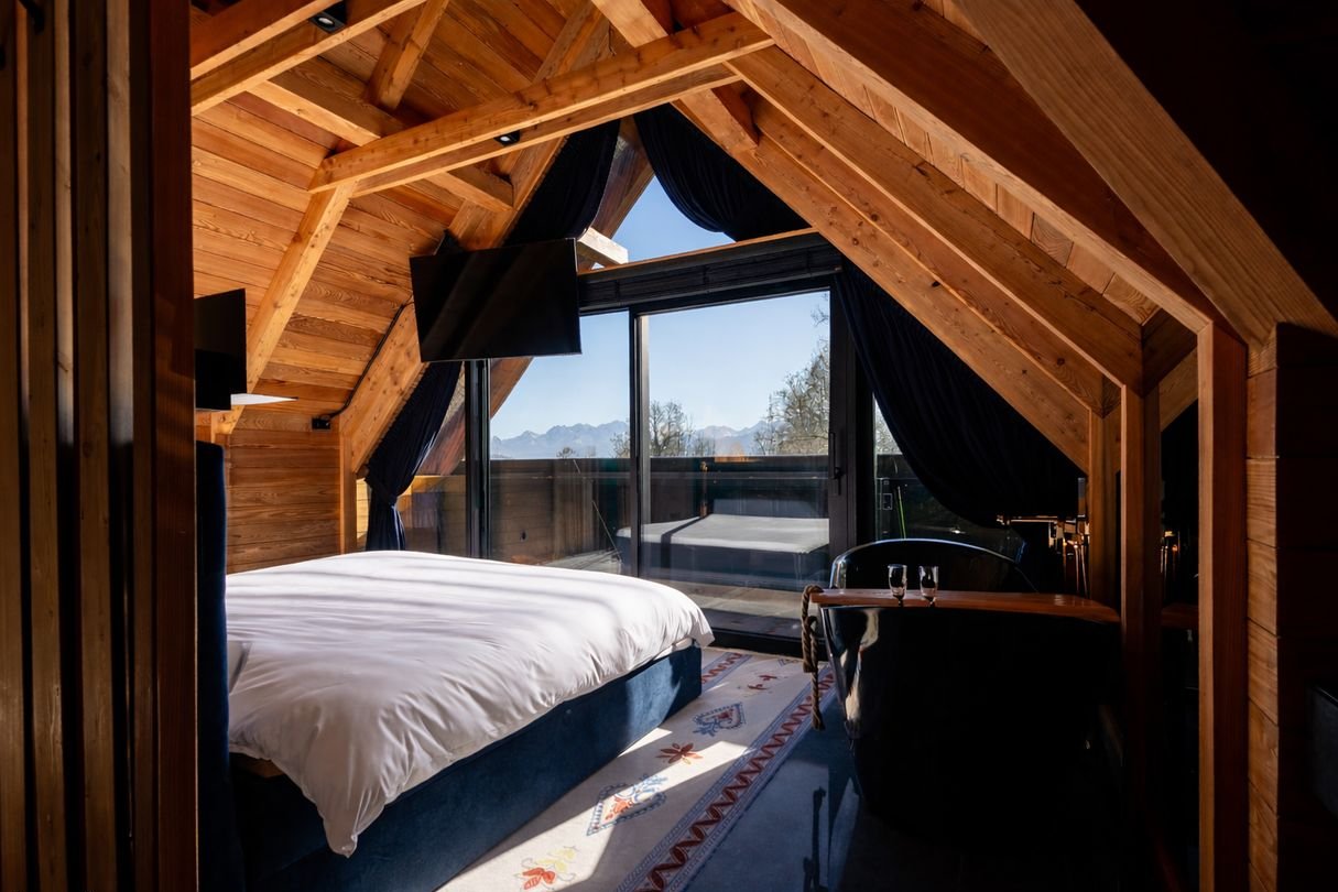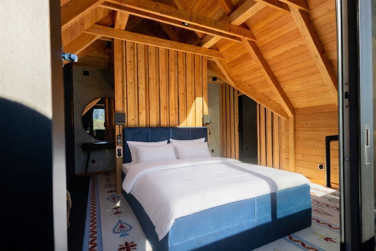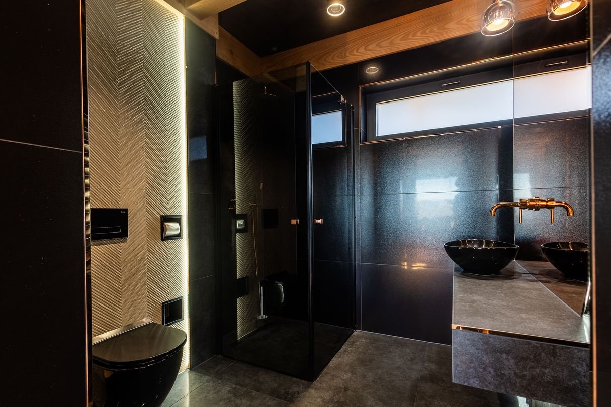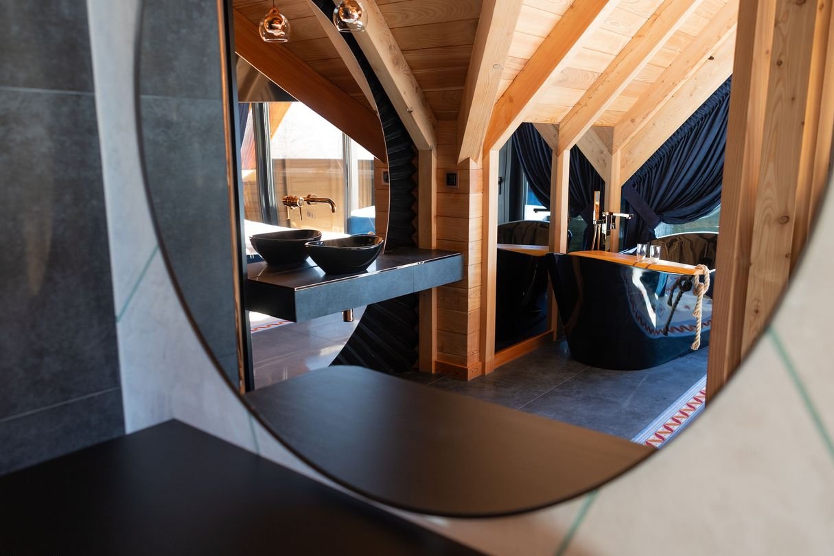 Strefa prywatna: 5 niezależnych sypialni, w tym apartament główny z prywatnym tarasem, łazienką z wolnostojącą wanną i garderobą, każda sypialnia z wyjściem na taras.