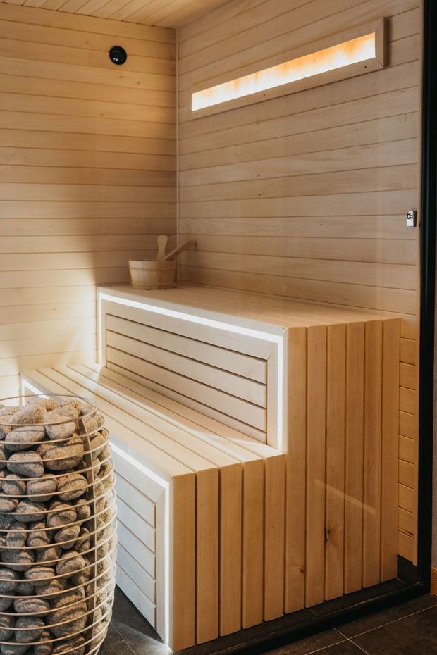 Wellness & relaks (poziom -1): garaż na 3 samochody, basen z przeciwprądem (podgrzewany i oświetlony) w aluminiowej, trzyszybowej zabudowie (również dach), sauna do 6 osób, kabina wrażeń, pełna łazienka oraz przygotowana instalacja pod jacuzzi zewnętrzne.