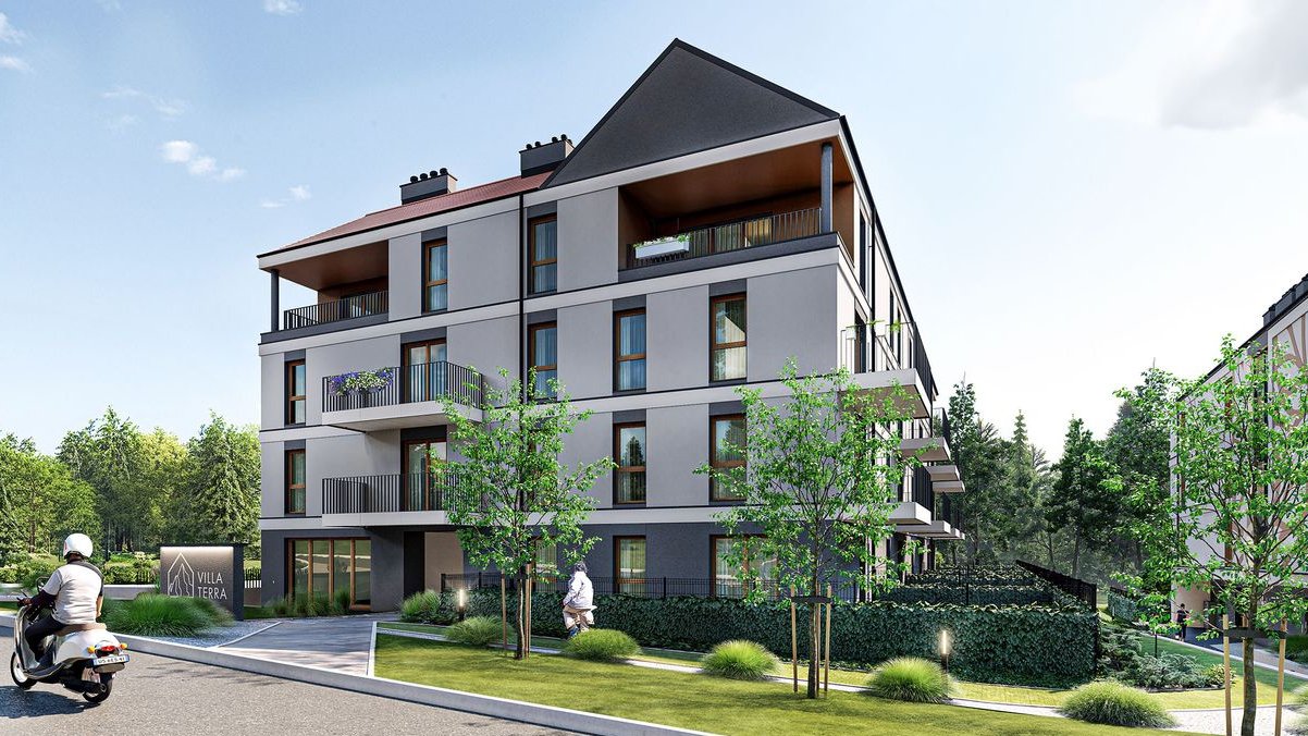 Mieszkanie M13 o powierzchni całkowitej 61,50 m2, zlokalizowane na pierwszym piętrze inwestycji Villa Terra z balkonem o powierzchni 7,42 m2 i oknami skierowanymi na wschód i zachód.