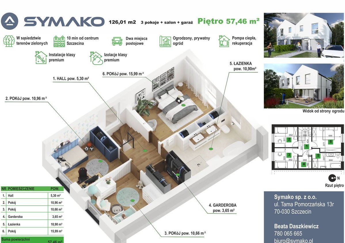 OSTATNI DOSTĘPNY dom 16 z salonem i pokojem na parterze: o powierzchni 106,48 m² (101,38 m² powierzchni użytkowej + przestrzeń poniżej 220 cm wysokości), wraz z 2 miejscami postojowymi, rekuperacja , pompą ciepła i klimatyzacją, z terenem 197 m2+ opcja na dodatkowy ogród kilkaset m2 w cenie 1 299 000 zł