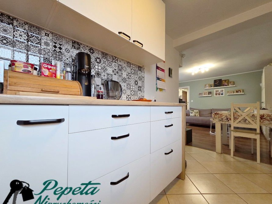 - w kuchni na podłodze płytki, ściany z elementami płytek, w cenie zabudowa kuchenna + sprzęt AGD (piekarnik, płyta indukcyjna, okap, zmywarka, do uzgodnienia lodówka),
