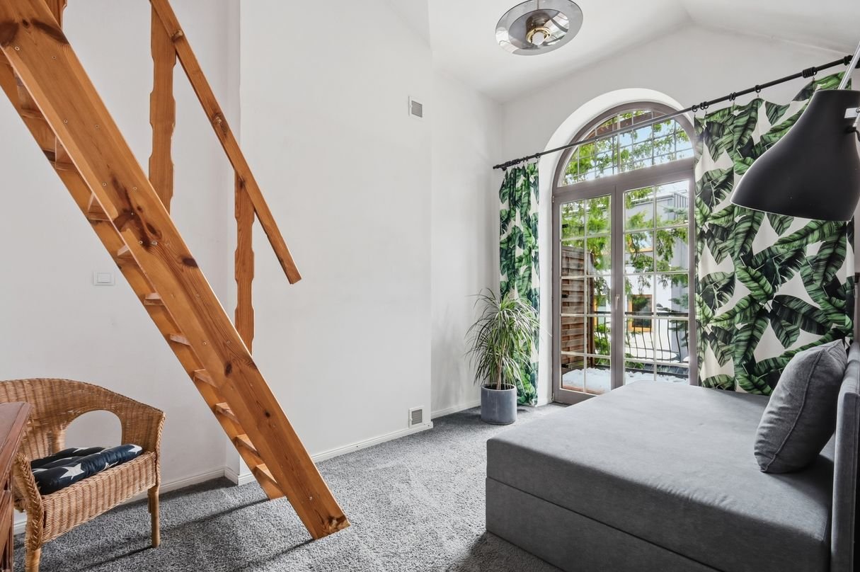 dwie antresole – idealne jako przestrzeń do pracy, relaksu lub dodatkowe pokoje.