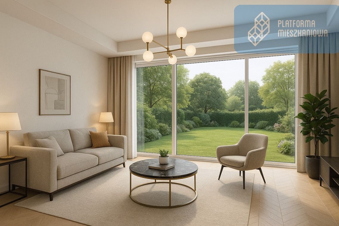 - Przestronny salon z aneksem kuchennym i wyjściem na ogród