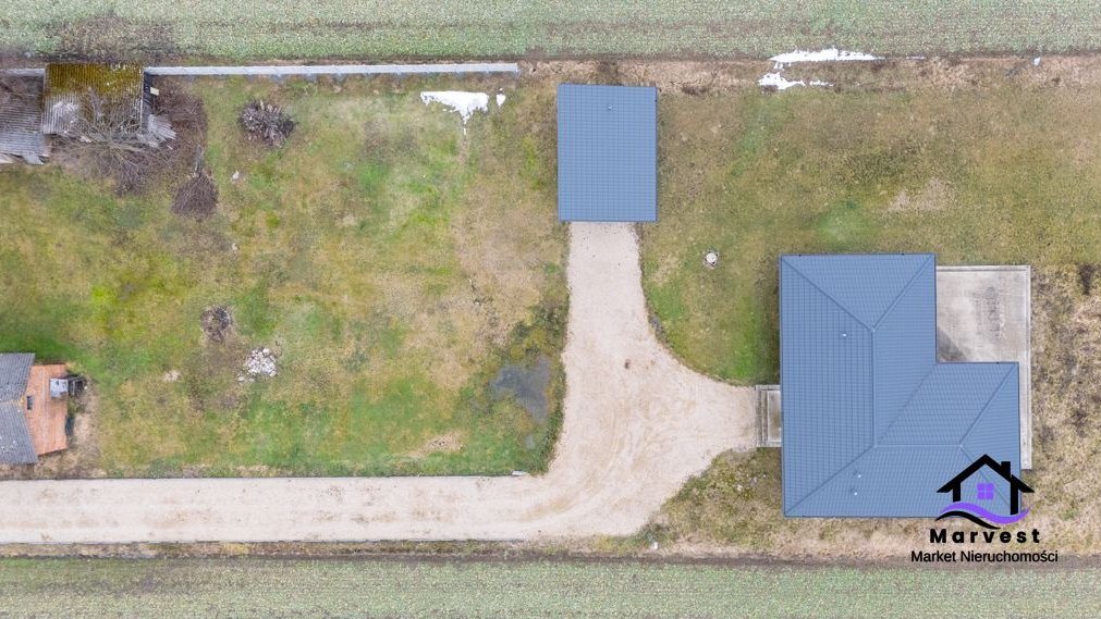 Składa się z dwóch działek - jednej z domem i garażem oraz drugiej rolnej.