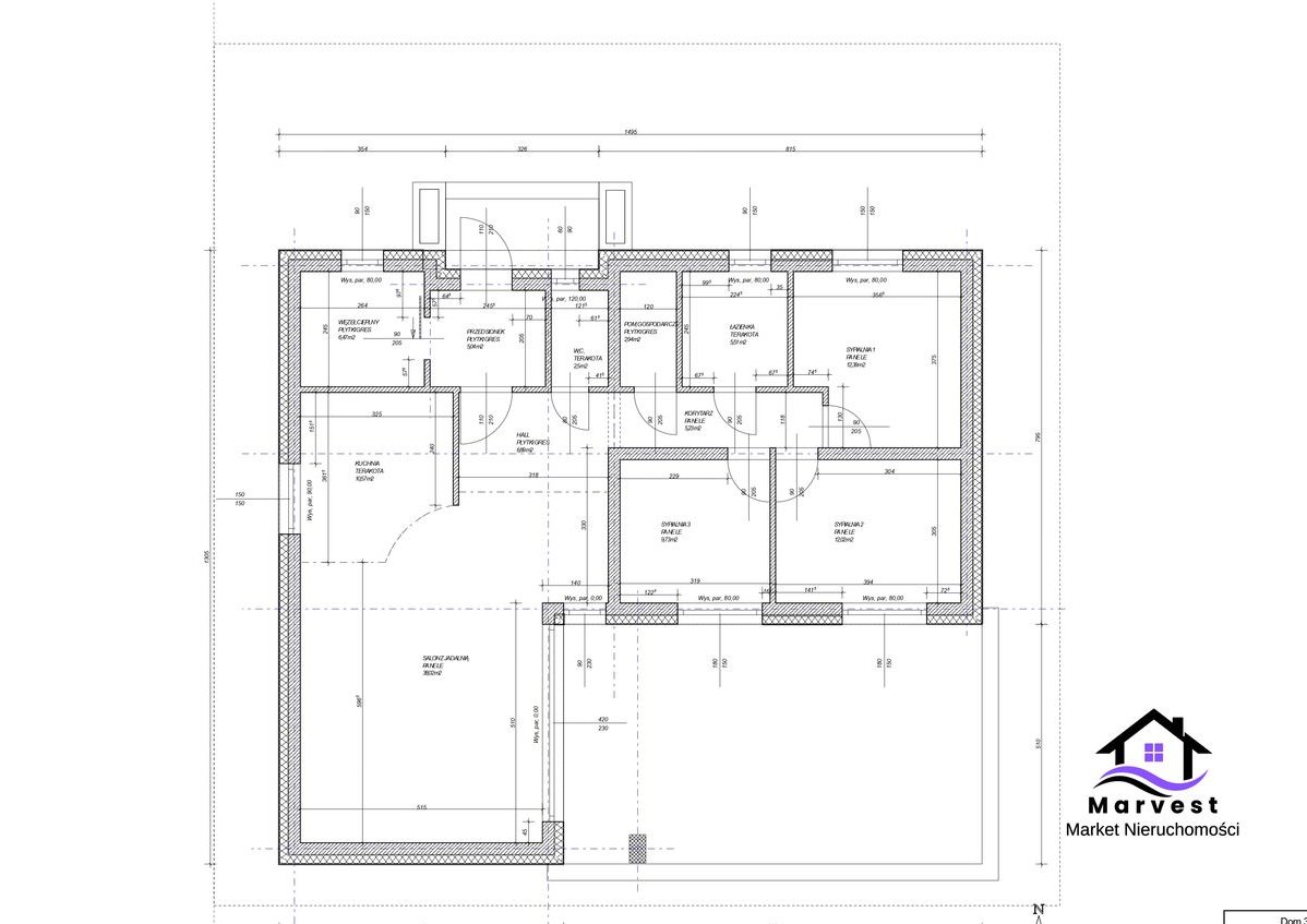 - skład domu (według projektu) - brak ścianek działowych, pomieszczenia można zmodyfikować pod swoje potrzeby