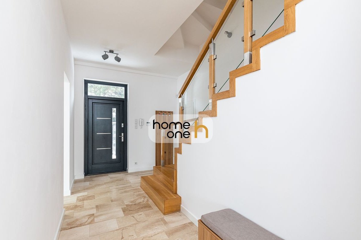 Elegancki dom wolnostojący 330 m² | pięknie zagospodarowany ogród z automatycznym podlewaniem | wysokie wnętrza, duże przeszklenia i kominek | nowoczesna architektura | klimatyzacja | garaż na 2 samochody + miejsca na podjeździe | gotowy do zamieszkania