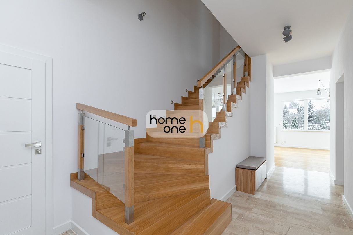 Dom jest bardzo funkcjonalny, jasny i komfortowy — idealny dla rodziny ceniącej przestrzeń, prywatność i prestiżową lokalizację. Całość uzupełnia pięknie zagospodarowany ogród, tarasy oraz nowoczesne rozwiązania techniczne (m.in. klimatyzacja, trzyszybowe okna, alarm).