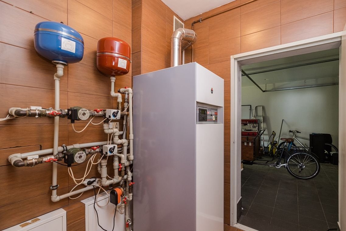 Pomieszczenie gospodarcze z piecem gazowym.