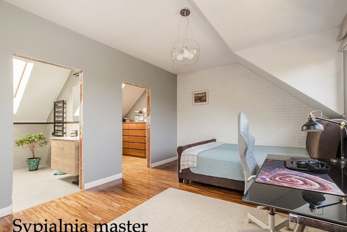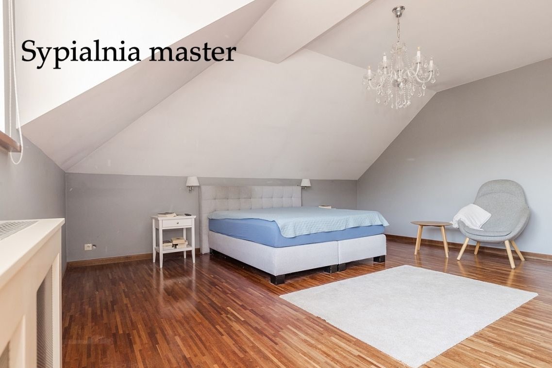 4 pokoje, w tym 2 sypialnie typu master z prywatnymi garderobami i łazienkami,