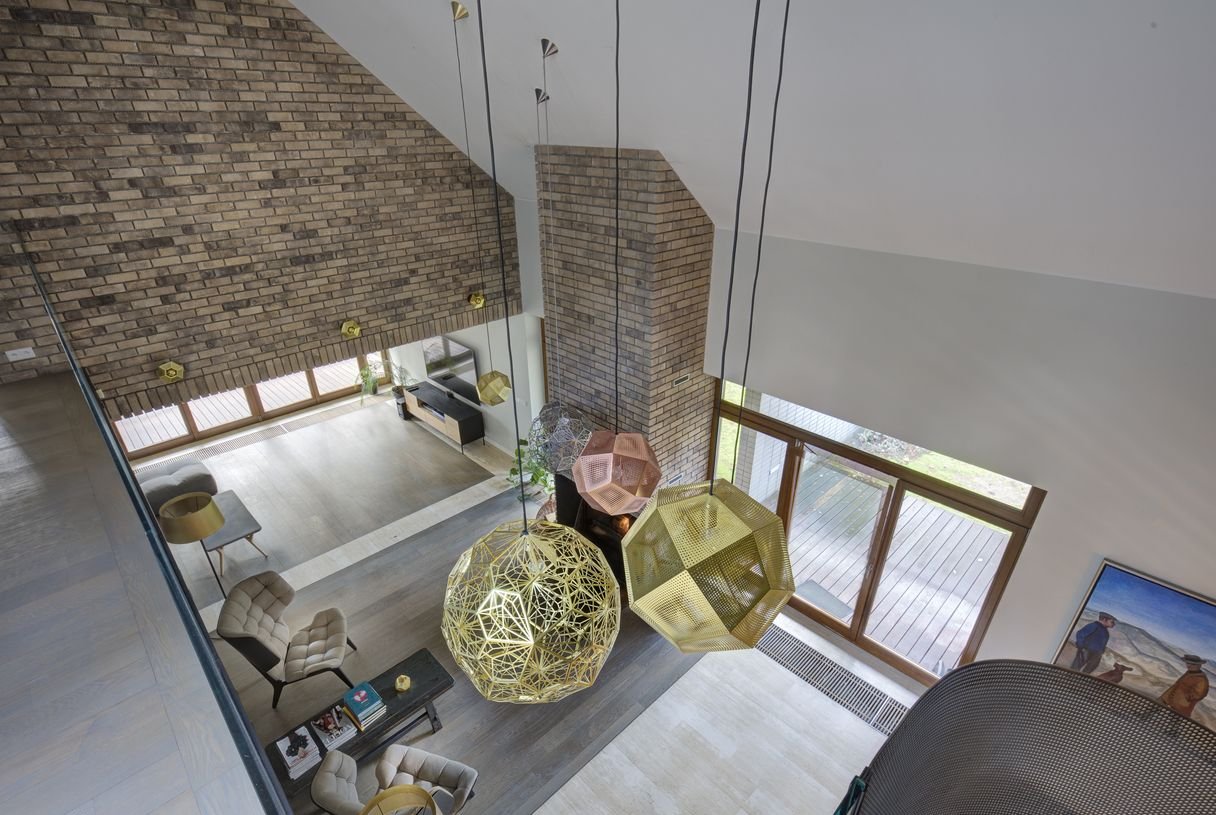 Właśnie to miejsce wybrali Właściciele przepięknej leśnej działki o powierzchni 2720m kw na realizację swojego domu marzeń, domu z charakterem. Jego największe zalety to przede wszystkim otwarte przestrzenie, jasne dobrze doświetlone wnętrza, duże okna od strony zachodniej wychodzące na zalesiony ogród i dające uczucie bliskości z naturą, oraz oszałamiające wrażenia, które wywołuje otwarta przestrzeń nad salonem widziana z poziomu parteru.