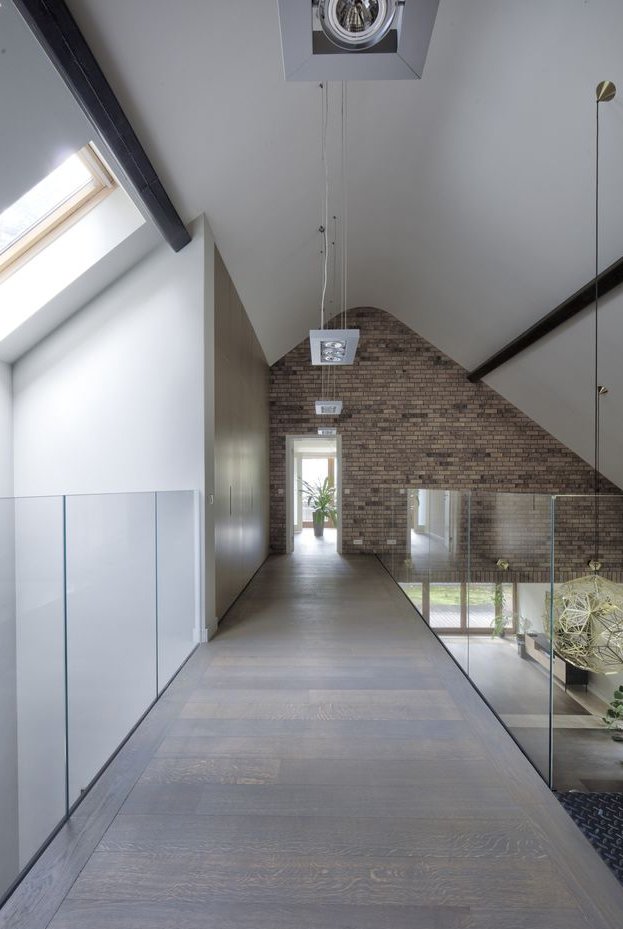 Wysokie poddasze użytkowe z antresolą wiszącą nad salonem, łącznie 117m kw: