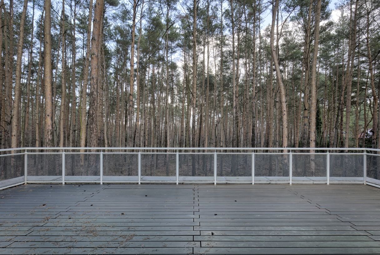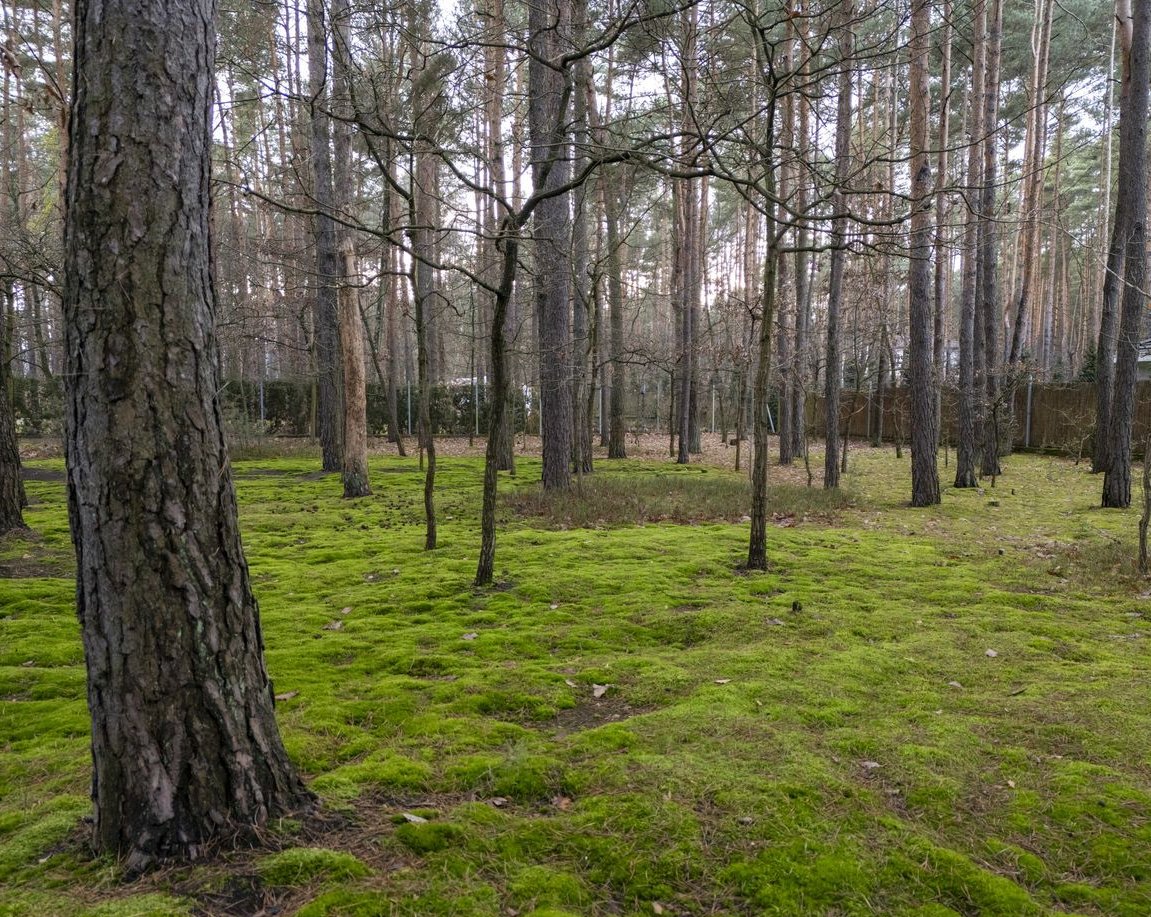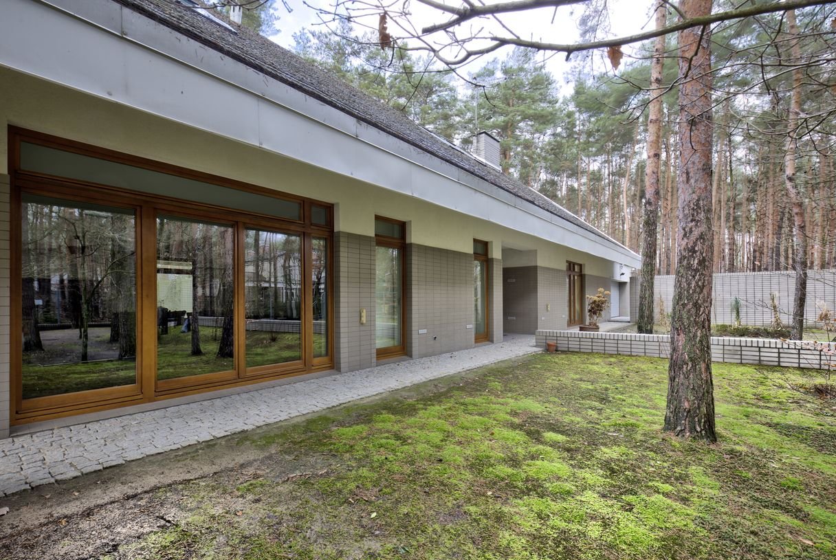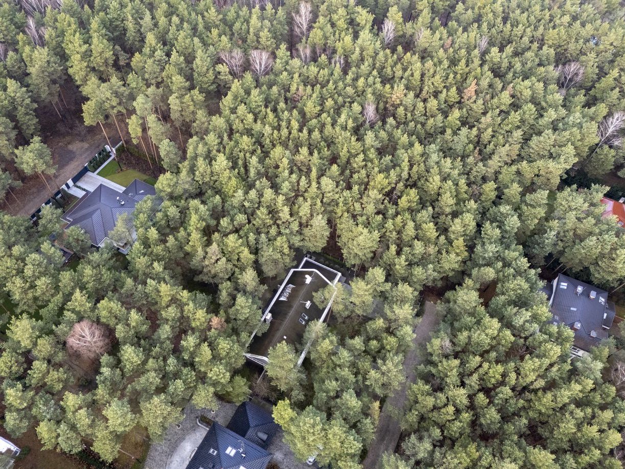 Działka zalesiona o pow. 2720m kw, wymiary 39m x 69m, front od wschodu, część ogrodowa zwrócona do zachodu, ogród o charakterze leśnym. W bezpośrednim sąsiedztwie zobaczymy dużą niezabudowaną nieruchomość porośniętą lasem sosnowym. Obie posesje znajdują się na końcu drogi prywatnej, co sprawia, że to kameralne i zaciszne miejsce.