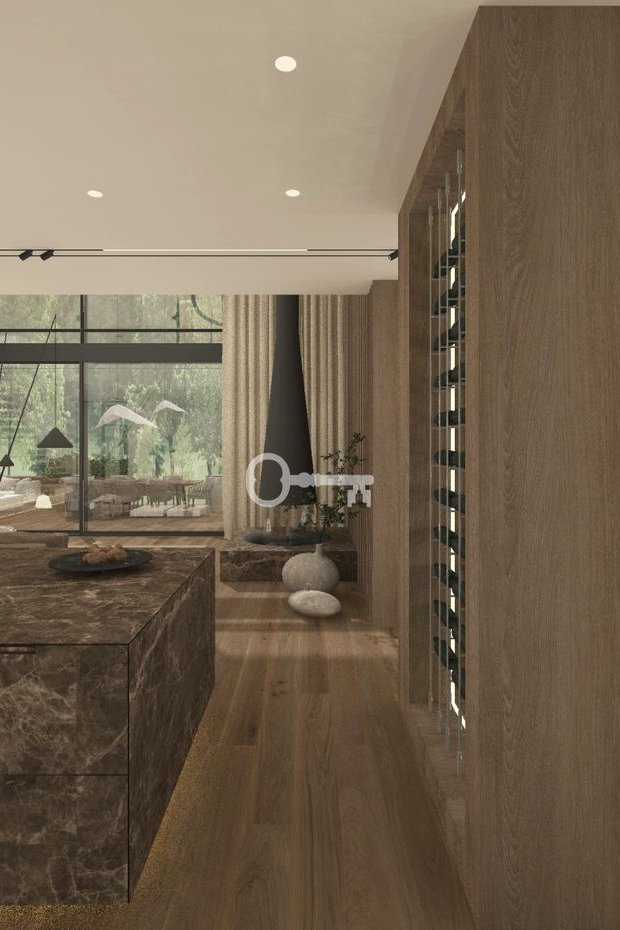 The project stands out for its refined elegance and the use of high-quality natural materials - architectural concrete, warm-toned wood, and glass - creating a timeless aesthetic.