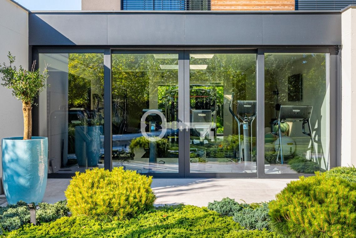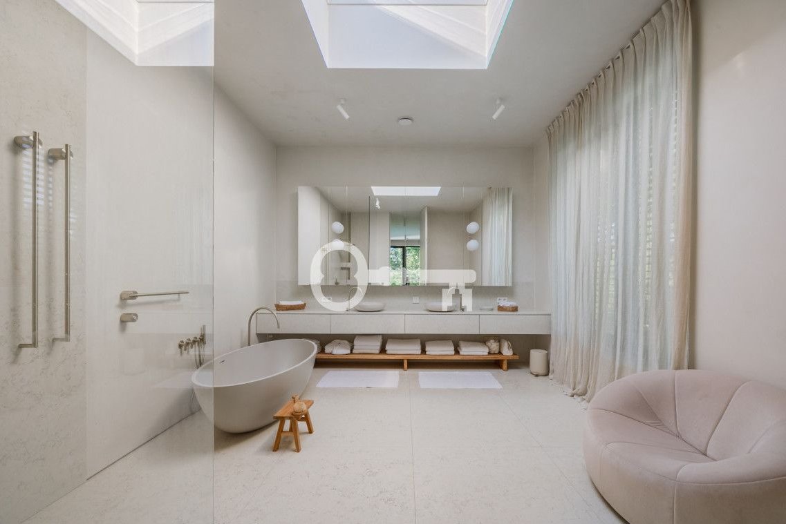 The residence features a wide range of energy-efficient solutions, including high-performance aluminum windows, mechanical ventilation with heat recovery, a ground source heat pump, air conditioning, and a heated outdoor pool. A distinctive feature is the use of marble plaster on selected walls, adding an exclusive, refined finish.
