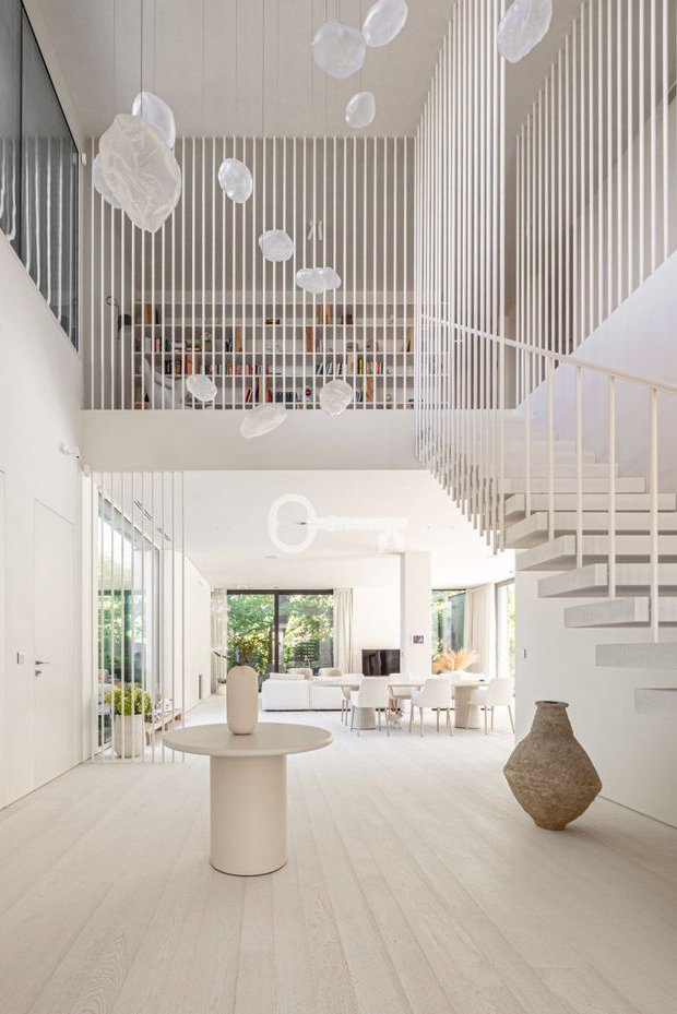 This home is a benchmark of modern residential design, crafted with exceptional attention to detail. The minimalist interior features a harmonious palette of soft, natural tones—white, beige, and muted earth shades—creating a serene and elegant atmosphere throughout.