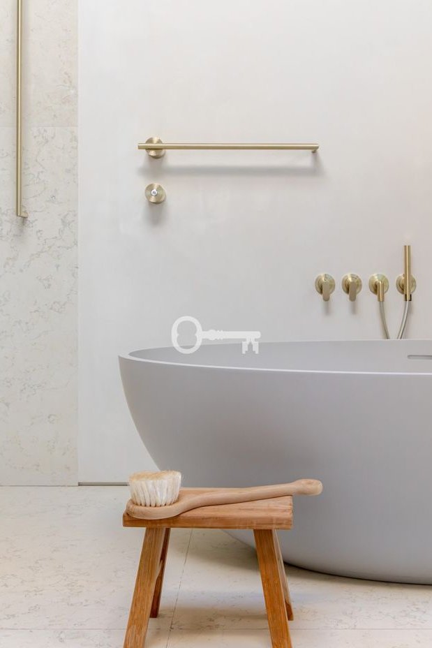 Floors are finished with premium brushed and oiled oak planks, adding warmth and authenticity. The bathrooms are styled with luxurious natural stone, freestanding bathtubs, countertop basins, and brushed brass fixtures. Large mirrors and bespoke cabinetry create a refined, spa-like ambiance.