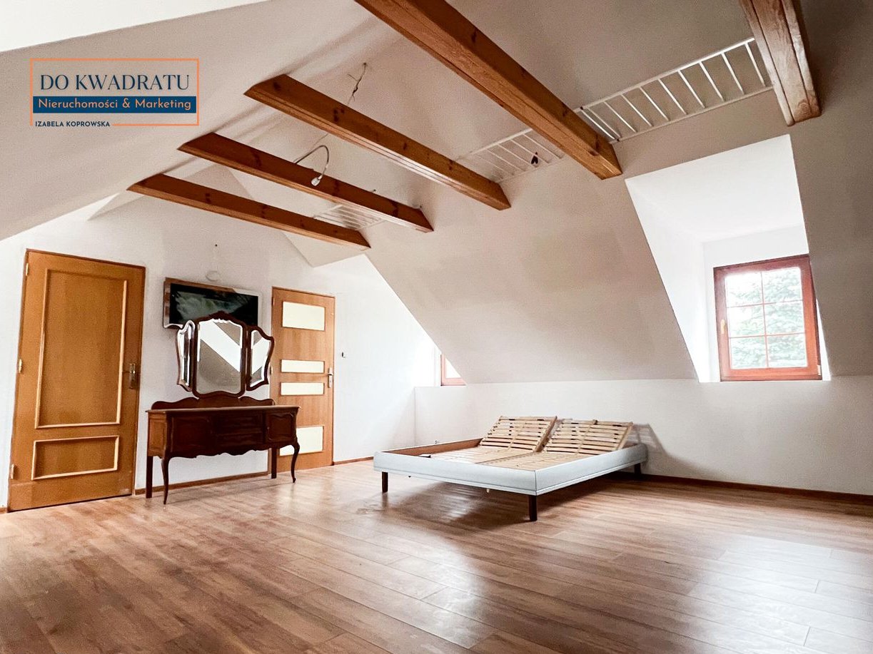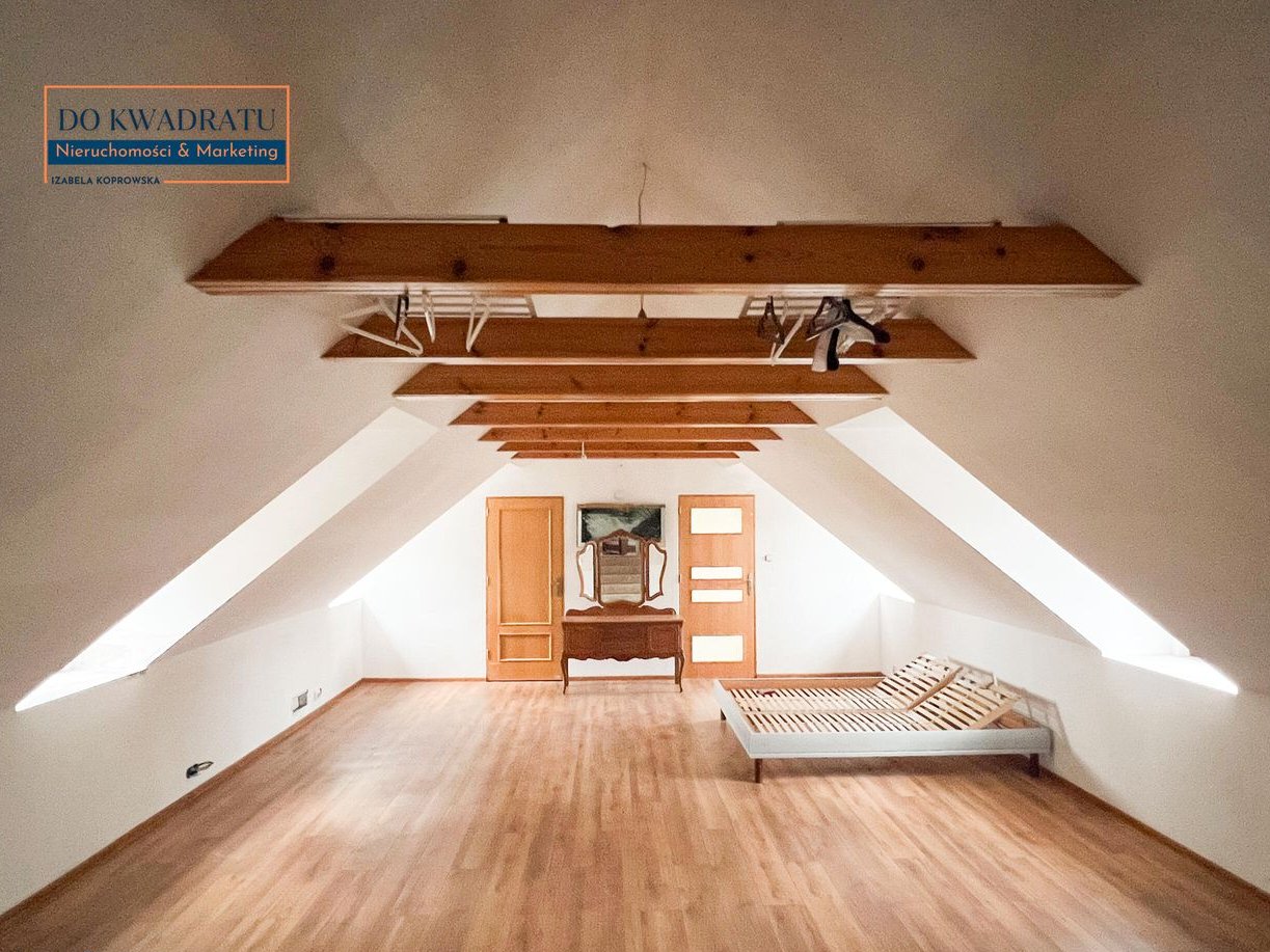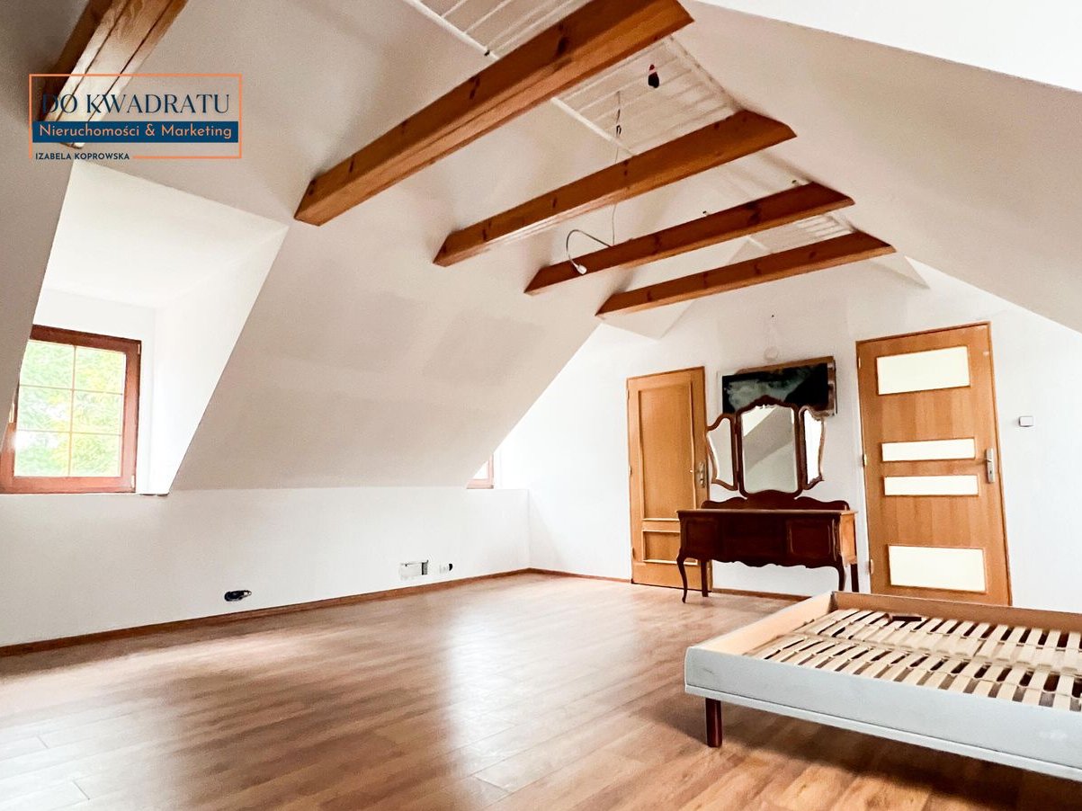 Poddasze: 4 pokoje, w tym główna sypialnia z garderobą i prywatną łazienką, druga łazienka z wanną i prysznicem, strych do adaptacji